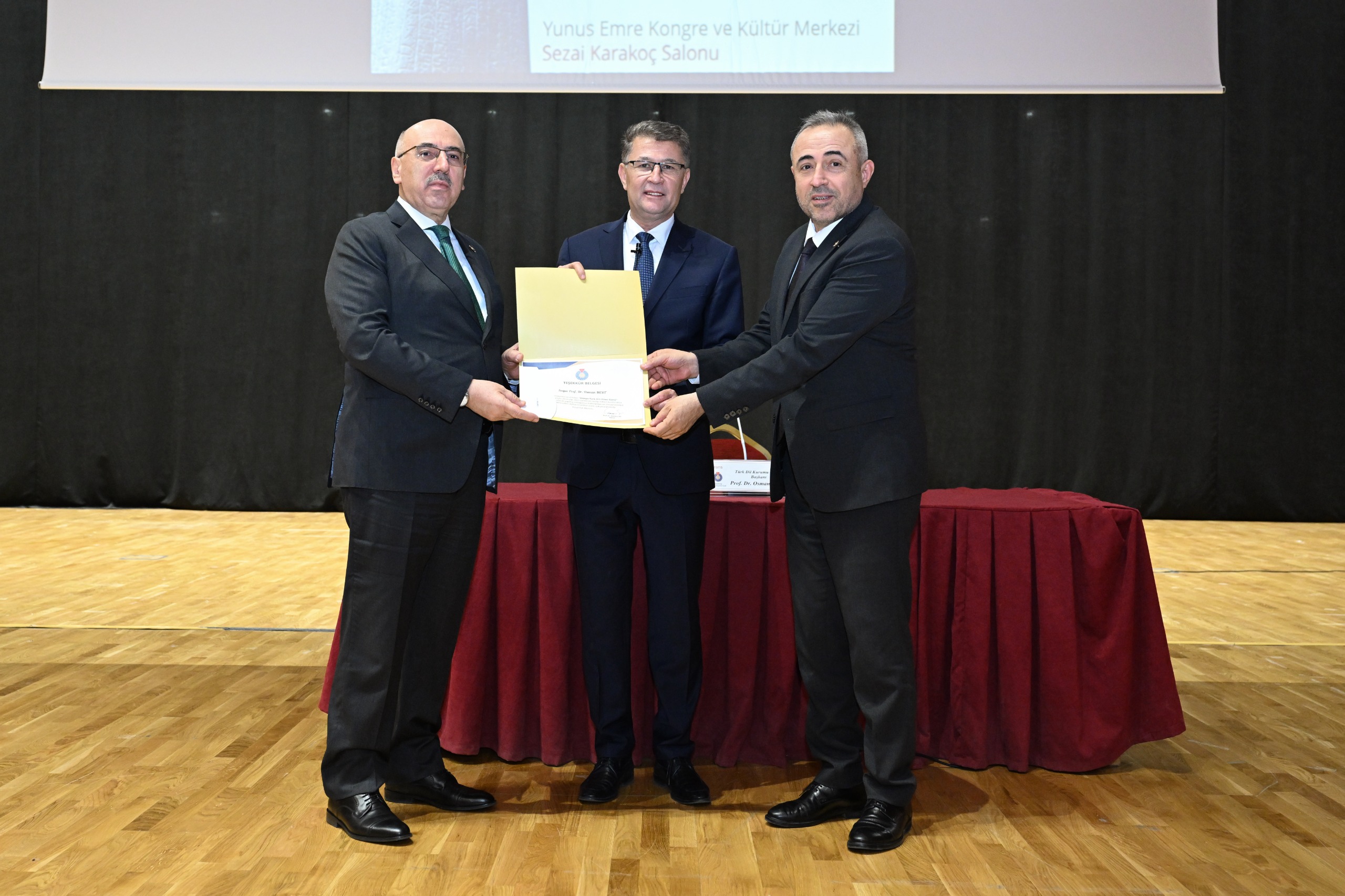 Programın sonunda Kahramanmaraş Milletvekili Dr. İrfan Karatutlu ve KSÜ Rektörü Prof. Dr. Mahmut Ak tarafından Türk Dil Kurumu Başkanı Prof. Dr. Osman Mert’e belge takdim edildi. Konferans, protokol üyeleri ve katılımcıların yer aldığı toplu fotoğraf çekimiyle sona erdi.