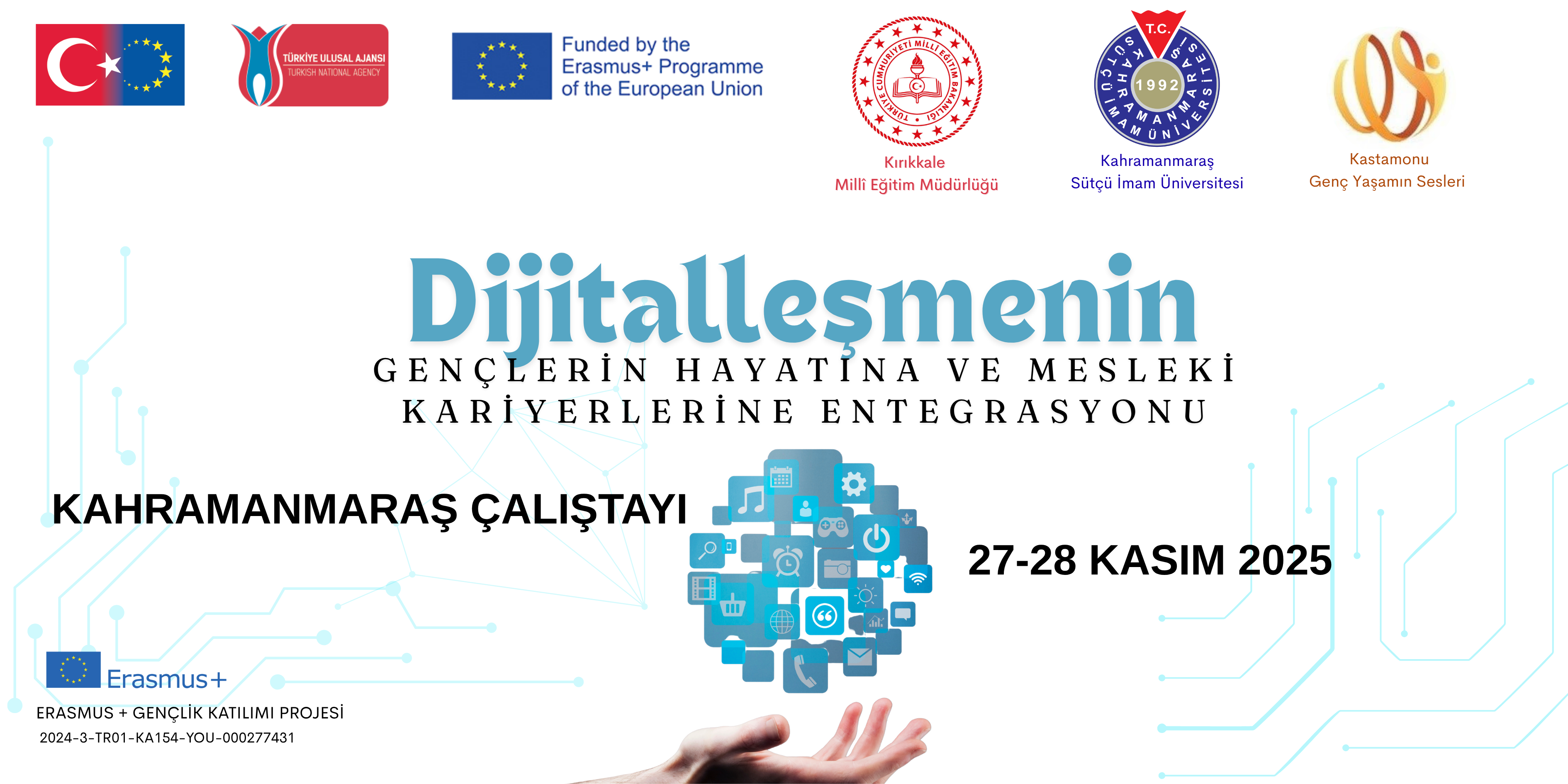 Kırıkkale İl Milli Eğitim Müdürlüğü koordinatörlüğünde Kahramanmaraş Sütçü İmam Üniversitesi ve Kastamonu Genç Yaşamın Sesleri Derneği ortaklığında hazırlanmış ve Türkiye Ulusal Ajansı tarafından kabul edilerek hibelendirilmiş "Dijitalleşmenin Gençlerin Hayatına ve Mesleki Kariyerlerine Entegrasyonu" isimli Erasmus KA154 Gençlik Katılımı Projesi kapsamında Kahramanmaraş Çalıştayı için katılımcı başvuruları başlamıştır.