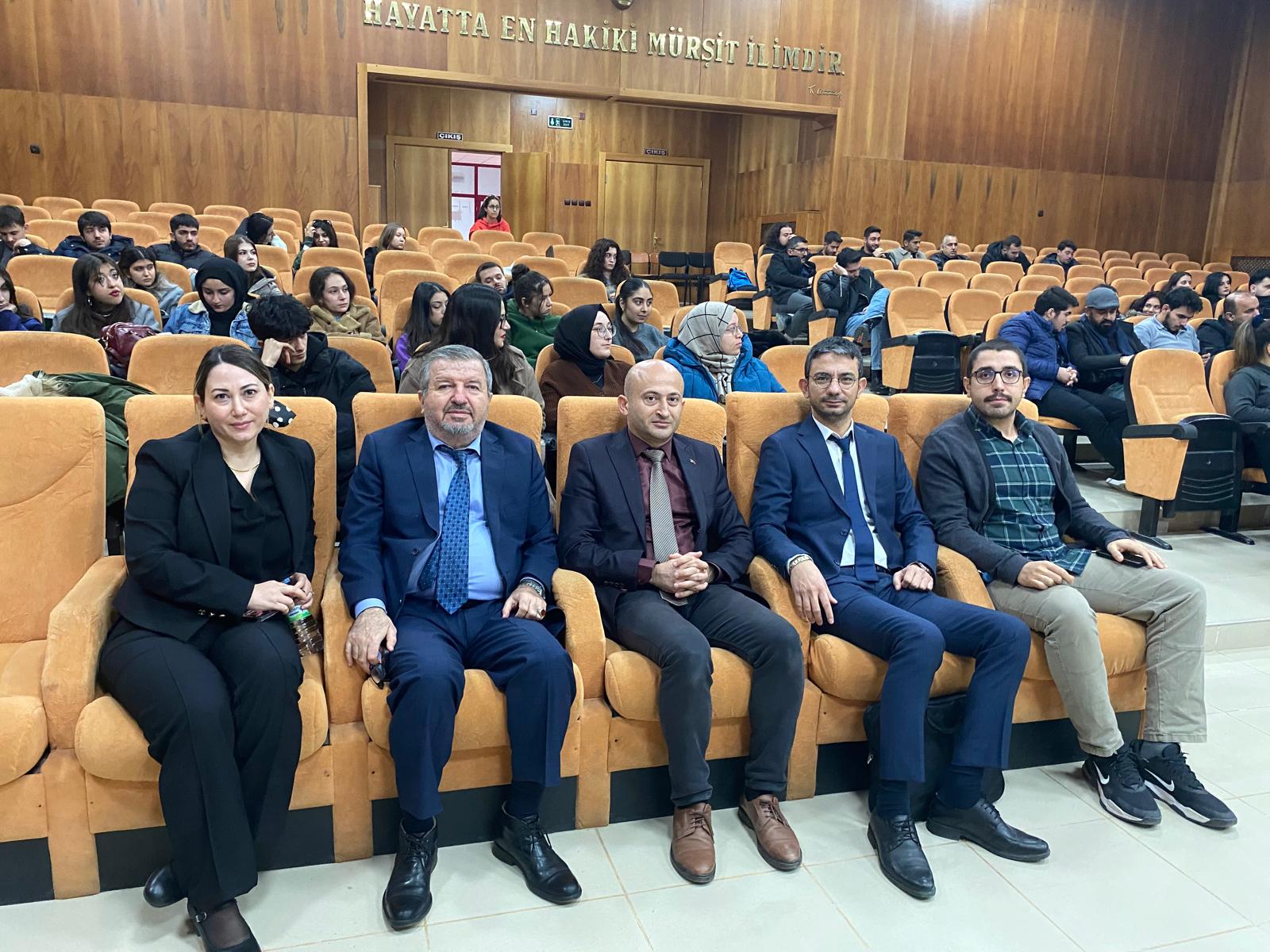 Siyaset Bilimi ve Uluslararası İlişkiler Bölümü tarafından yürütülen “İnsan Hakları ve Hukuk: Dünyada İnsan Haklarının Genel Görünümü” konulu panel düzenlendi. Bölüm Başkanı Dr. Öğr. Üyesi Fatmanur Kaçar Aşcı’nın açılış konuşmasıyla başlayan etkinlik, Prof. Dr. Toğrul İsmayıl’ın moderatörlüğünde gerçekleştirildi. Panelde Dr. Öğr. Üyesi Selçuk Koca ve Dr. Öğr. Üyesi Hacı Mehmet Boyraz, “İnsan Hakları Nedir?” ve “İnsan Haklarının Genel Görünümü” başlıkları çerçevesinde yaptıkları sunumlarla öğrencileri bilgilendirdi. Panele ayrıca bölüm öğretim elemanları Dr. Öğr. Üyesi Ahmet Hikmet Zabun ve Arş. Gör. Taha Oğultekin de katıldı.