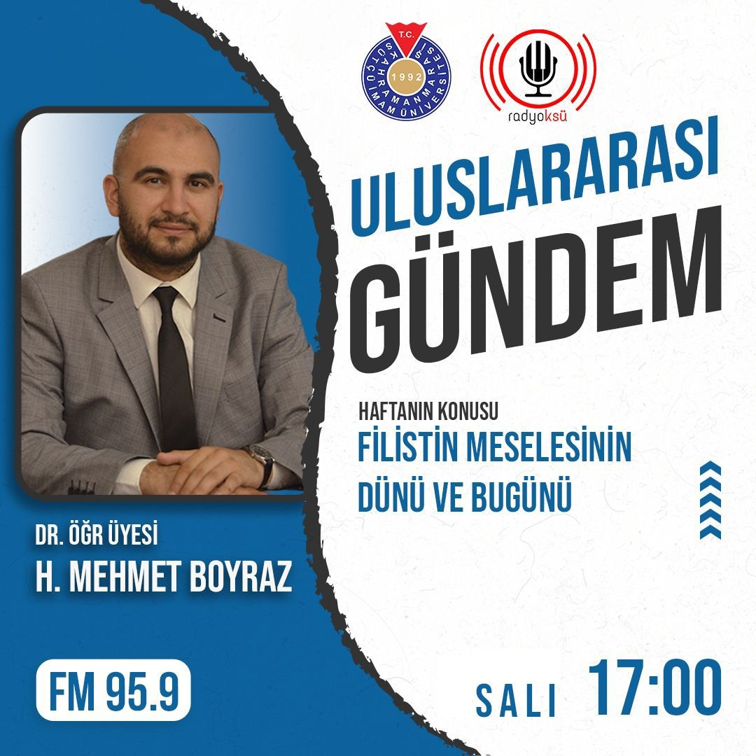 Bölümümüz öğretim elemanı Dr. Öğr. Üyesi Hacı Mehmet Boyraz eşliğinde "Uluslararası Gündem" haftalık konularıyla Radyo KSÜ'de.