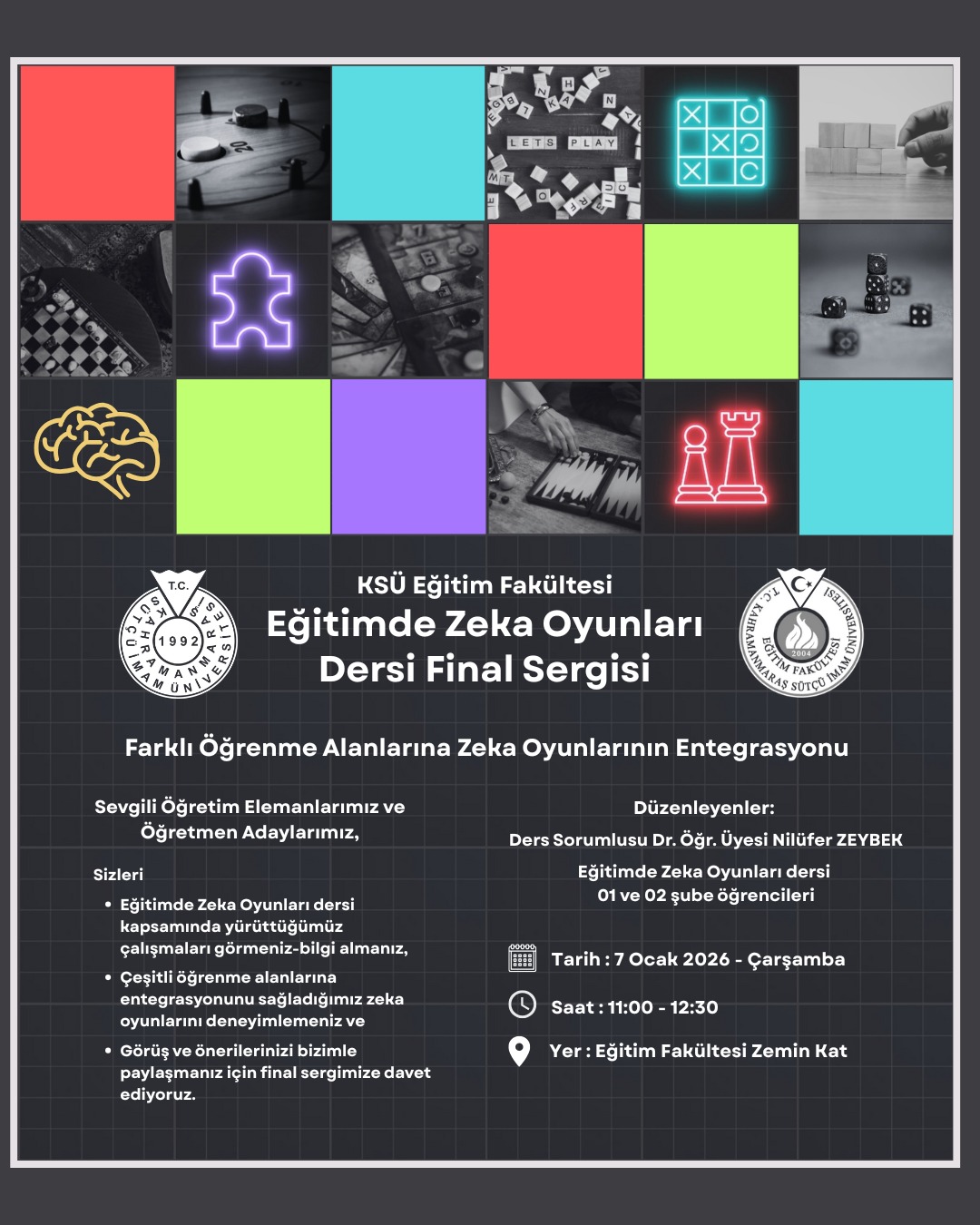 Eğitimde Zekâ Oyunları Dersi Final Sergisi: Farklı Öğrenme Alanlarına Zeka Oyunlarının Entegrasyonu