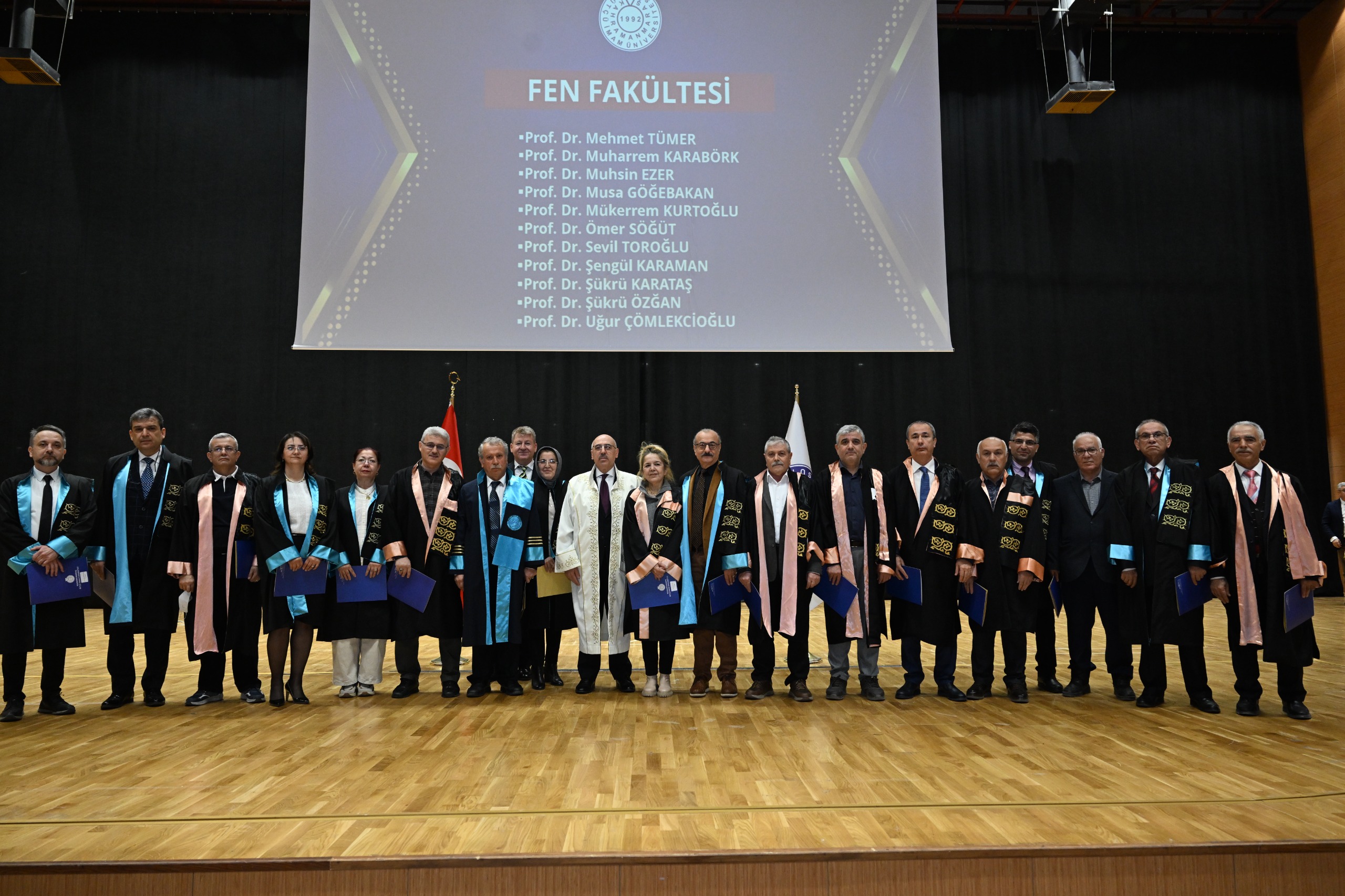 Yunus Emre Kongre ve Kültür Merkezi Sezai Karakoç Konferans Salonu’nda düzenlenen törende, Fen Fakültesi öğretim üyelerine profesörlük belgeleri KSÜ Rektörü Prof. Dr. Mahmut Ak ve Fen Fakültesi Dekanı Prof. Dr. Serhan URUŞ tarafından takdim edildi.