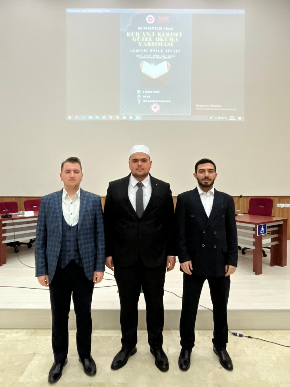 Üniversiteler Arası Kuranı Kerim Güzel Okuma Yarışmasında öğrencimiz Onur ÇAVDAR Akdeniz Bölge Birincisi olmuştur. Öğrencimizi ve emeği geçen hocalarımızı tebrik ederiz.