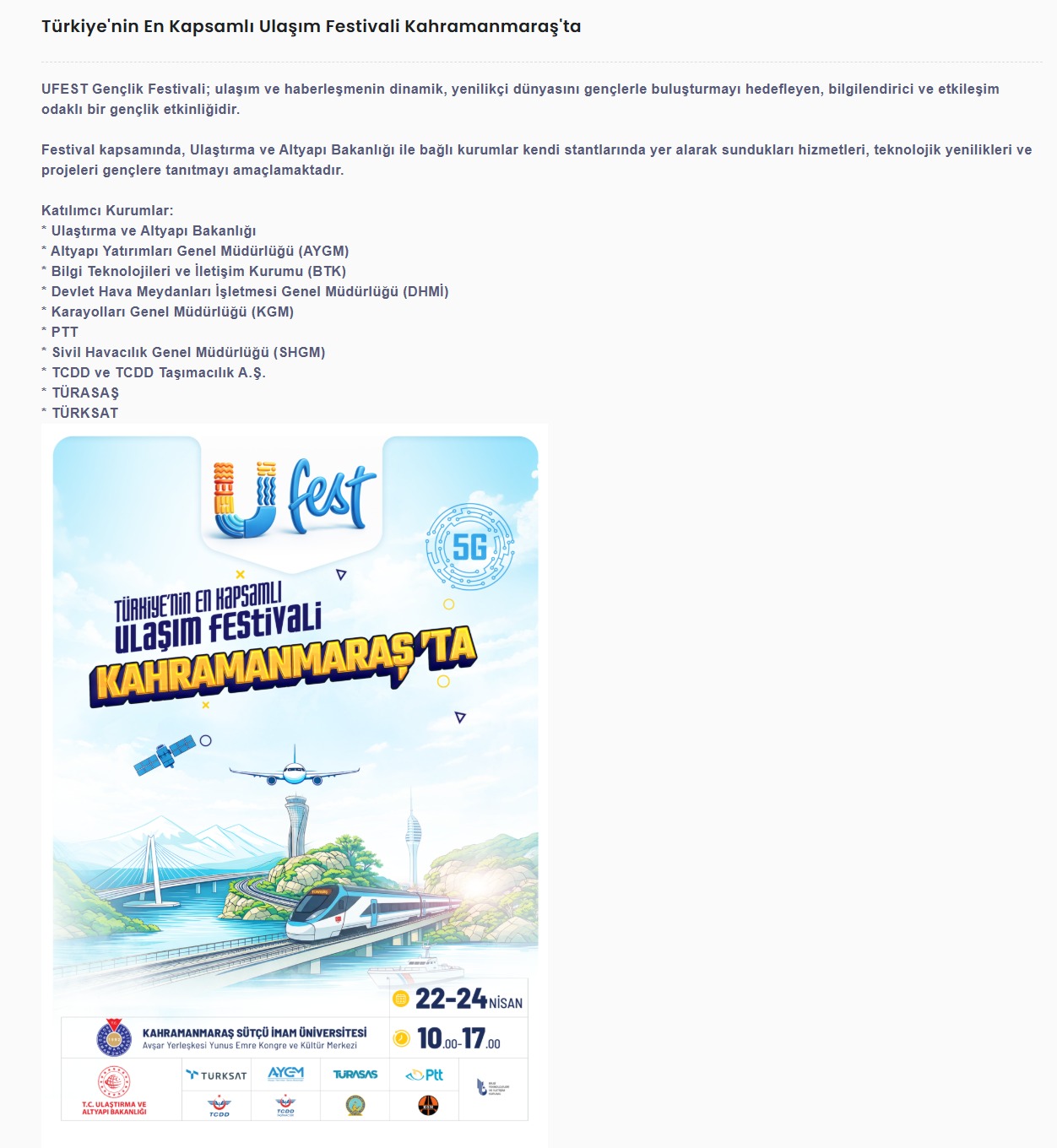 Öğrencilerimizin Dikkatine: Türkiye'nin En Kapsamlı Ulaşım Festivali Kahramanmaraş'ta