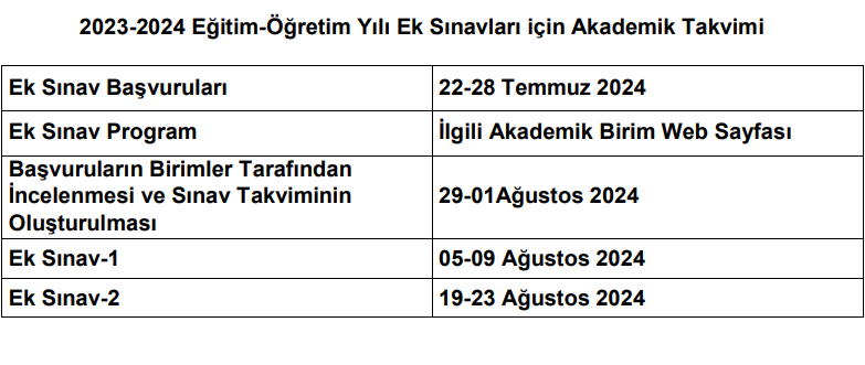 2023-2024 Eğitim-Öğretim Yılı Ek Sınavları için Akademik Takvimi