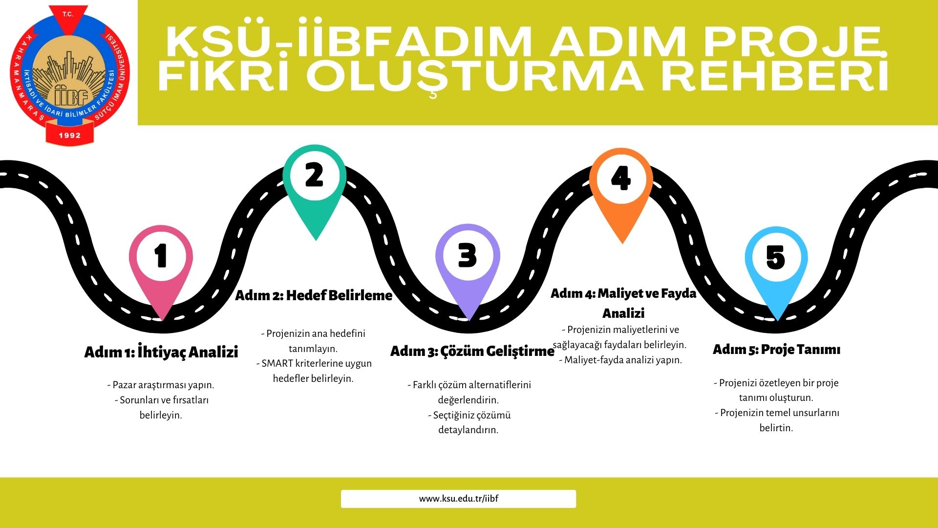 Fakültemizde uygulanmaya başlanan Stratejik Kalite Yönetimi (SKY) Eylem Planına ilişkin “C.1.3. Proje fikri oluşturma, başvuru hazırlama ve sonuçlandırmaya yönelik materyaller oluşturulması” faaliyeti kapsamında proje fikri oluşturma rehberine ilişkin yol haritası infografik olarak sunulmuştur.