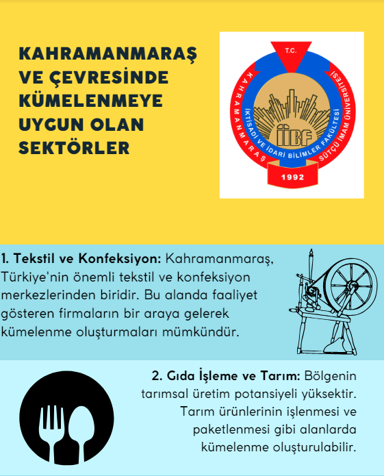 Fakültemizde uygulanmaya başlanan Stratejik Kalite Yönetimi (SKY) Eylem Planına ilişkin “F.6.1. Kahramanmaraş ve çevresindeki kümelenmeye yönelik eğilim oluşturulabilecek sektörlerin tespiti” faaliyeti kapsamında belirlenen sektörler infografik olarak sunulmuştur.