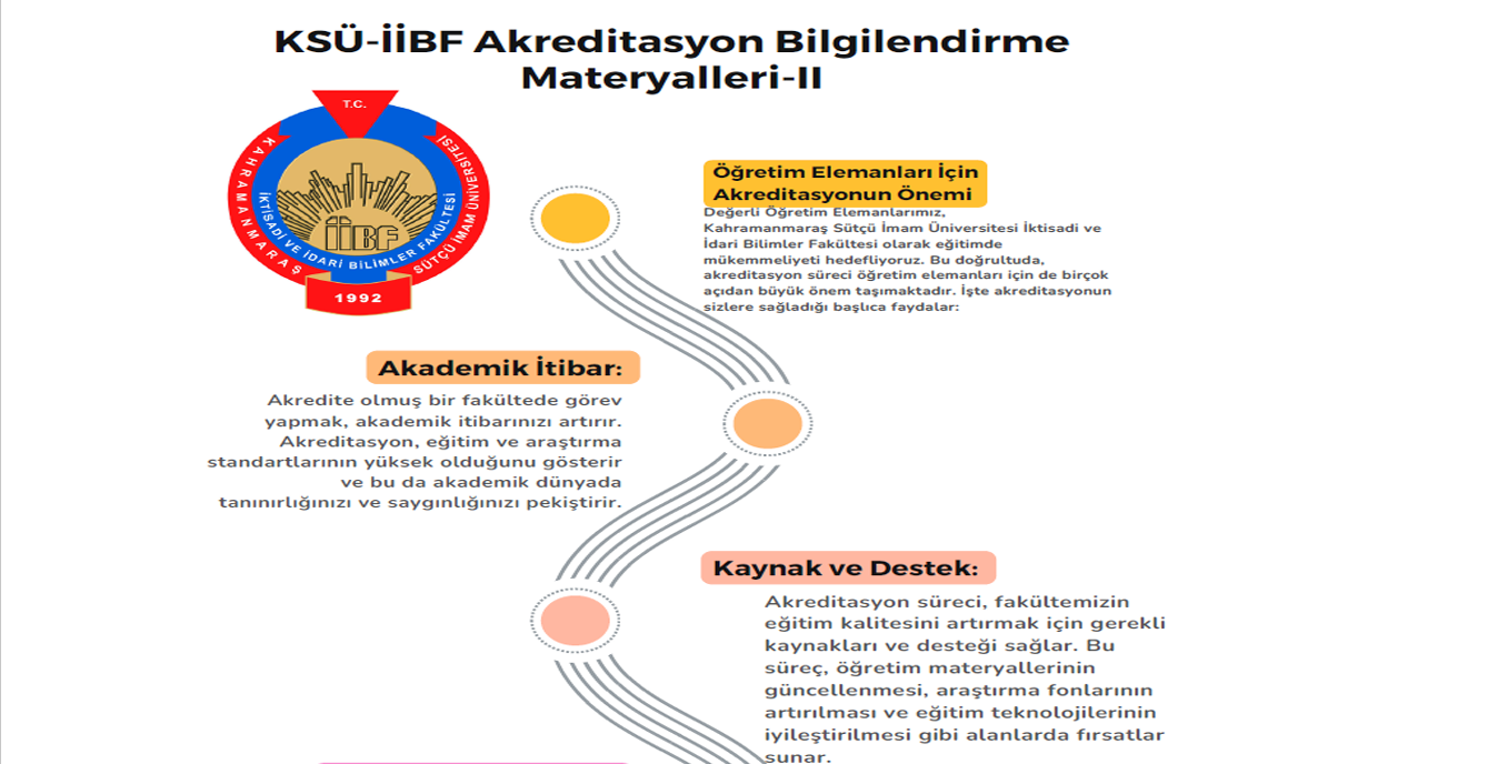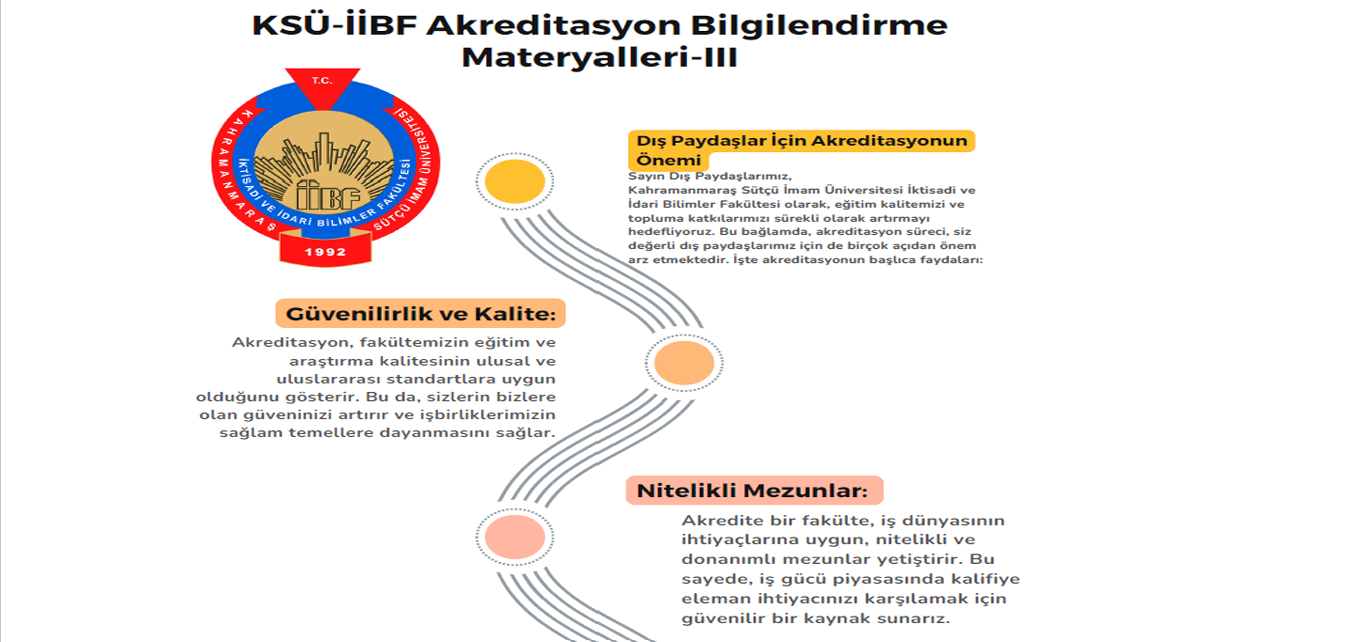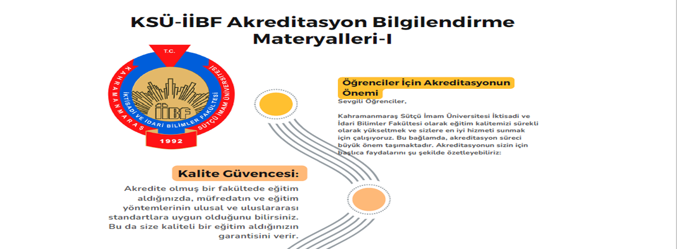 Fakültemiz 2023 KİDR kapsamında uygulanmaya başlayan Stratejik Kalite Yönetimi (SKY) Eylem Planı kapsamında "H.6. Akreditasyonla ilgili farkındalığın artırılması" eyleminin alt faaliyeti olan "H.6.1. Öğretim elemanlarının akreditasyon hakkında bilgilendirilmesi", "H.6.2. İdari personelin akreditasyonla ilgili bilgilendirilmesi", "H.6.3. Öğrencilerin akreditasyonla ilgili bilgilendirilmesi" ve "H.6.4. Tanıtıcı materyaller hazırlanması ve duyurulması" faaliyetlerinin gerçekleştirilmesi için hazırlanan içerikler infografik olarak sunulmuştur.