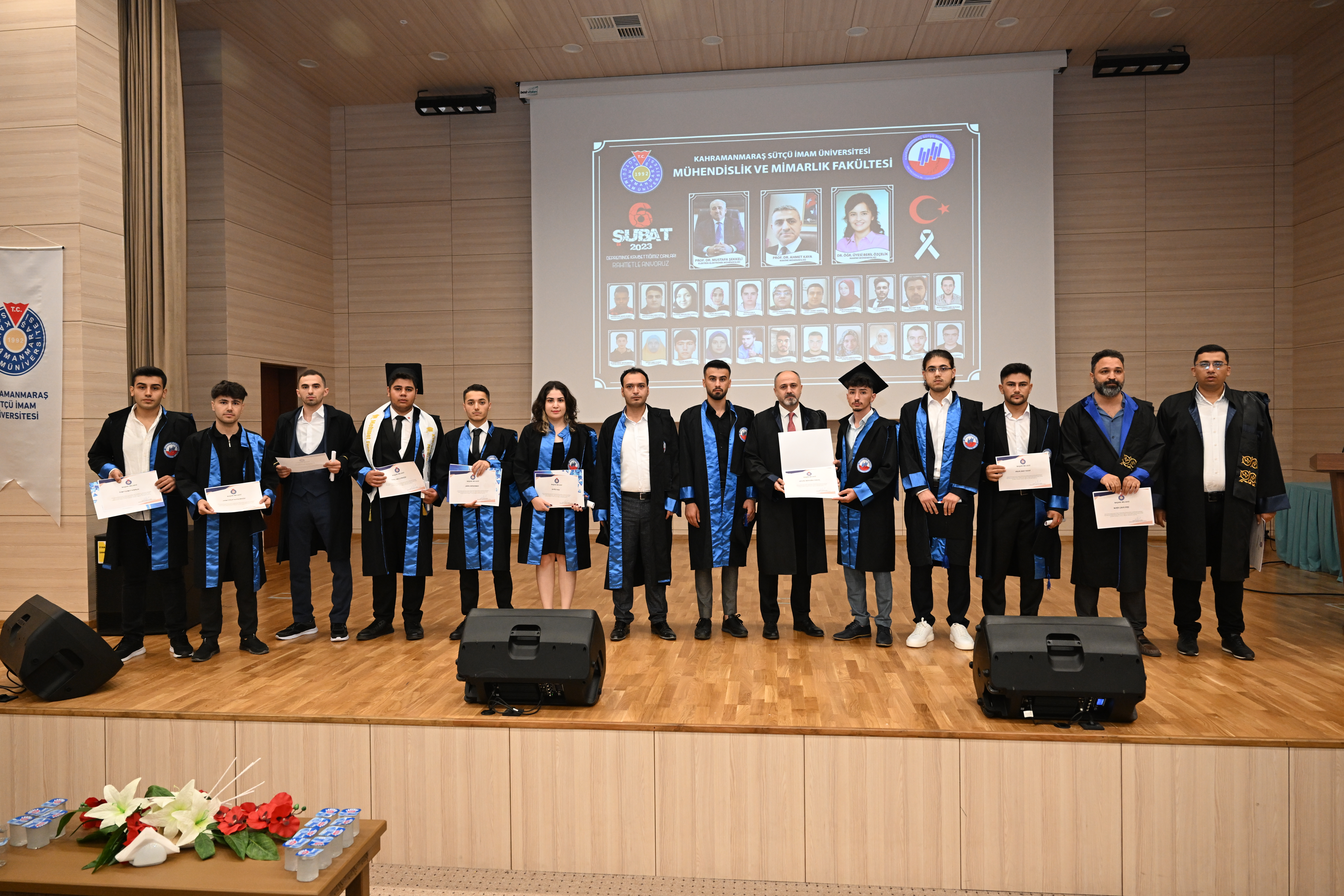 Kahramanmaraş Sütçü İmam Üniversitesi (KSÜ) Mühendislik ve Mimarlık Fakültesinde 2023-2024 eğitim-öğretim döneminde mezun olmaya hak kazanan öğrenciler için mezuniyet töreni düzenlendi.
