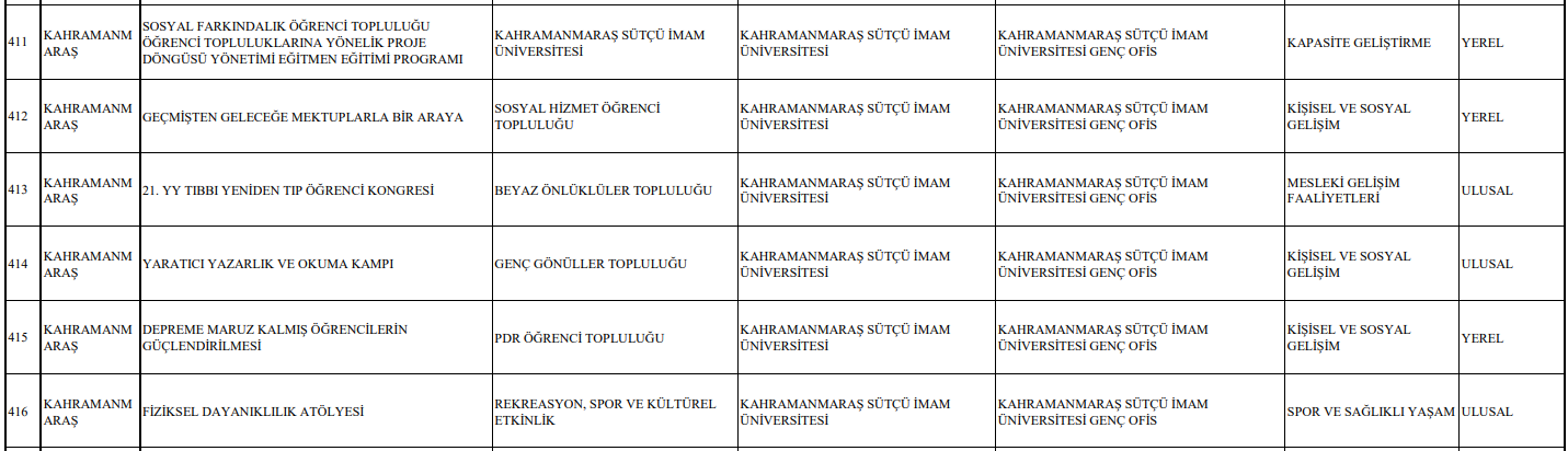 2 Aralık – 26 Aralık 2024 tarihleri arasında alınan başvurular kapsamında, 81 ilden toplam 998 proje değerlendirmeye alınmıştır. Üniversitemiz adına başvurulan projelerin 6 tanesi desteklenmeye hak kazanmıştır.