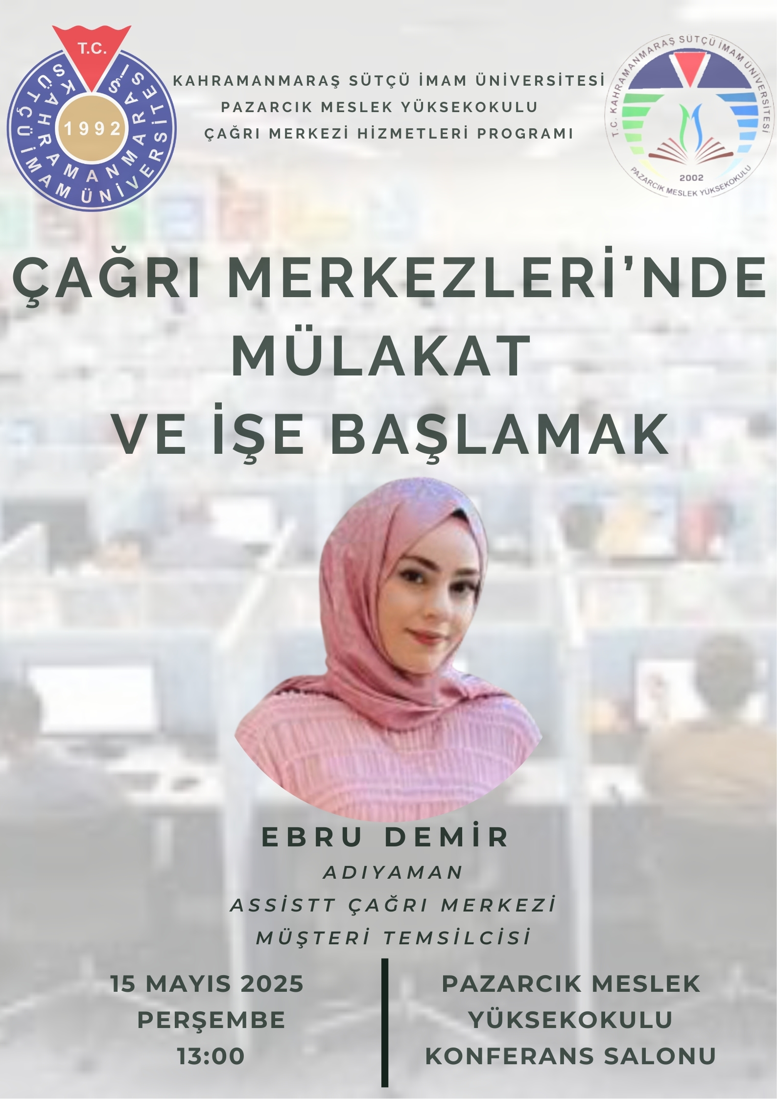 "Çağrı Merkezleri'nde Mülakat ve İşe Başlamak" 15 Mayıs 2025 Perşembe 13:00 - Çağrı Merkezi Hizmetleri Programı Etkinliği