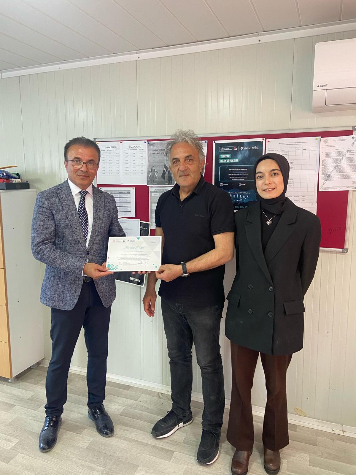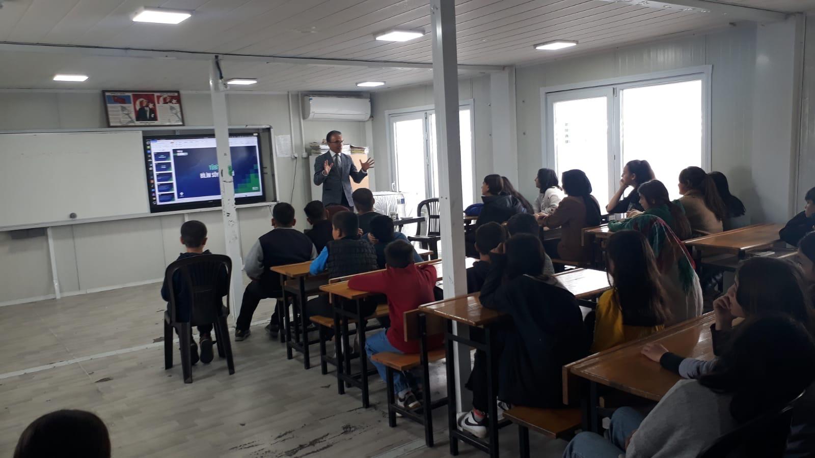 Afşin Meslek Yüksekokul Müdürümüz Doç. Dr. Nurettin KOCA, 29 Nisan 2025 tarihinde, "Tübitak Bilim Söyleşileri" kapsamında Kahramanmaraş Dulkadiroğlu ilçesindeki Umut Konteyner Kent Ortaokulu Ortaokulu öğrencileri ile buluştu.