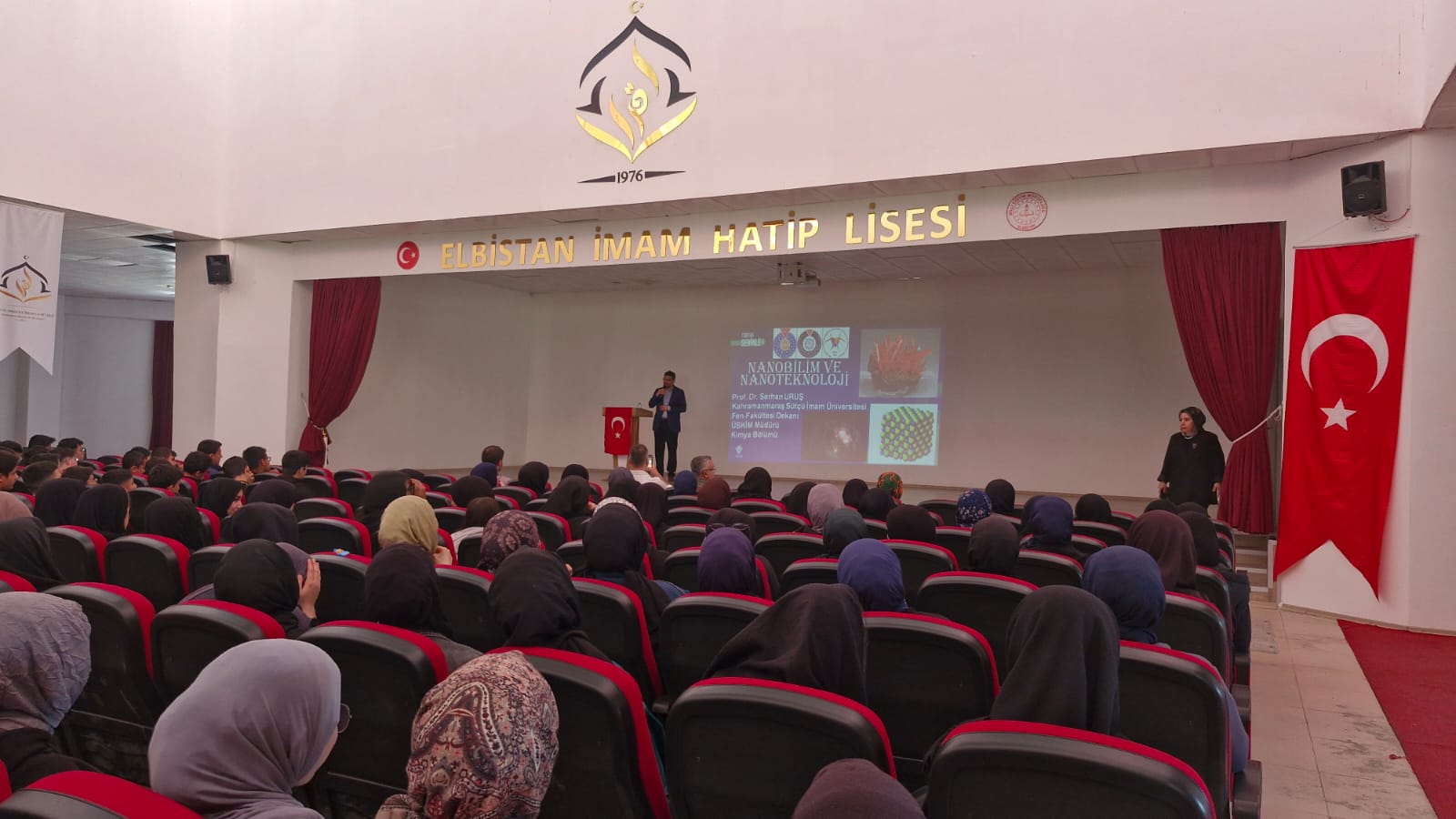 28 Nisan’da Elbistan Anadolu İmam Hatip Lisesi’nde, 29 Nisan’da Ertuğrul Gazi Görme Engelliler Ortaokulu’nda, 2 Mayıs’ta Kozan Bilim ve Sanat Merkezi’nde ve 22 Mayıs’ta Nuri Pakdil Bilim ve Sanat Merkezi’nde düzenlenen etkinliklerde Prof. Dr. URUŞ, “Malzeme Bilimi ve Nanoteknoloji” konulu sunumlar yaptı.