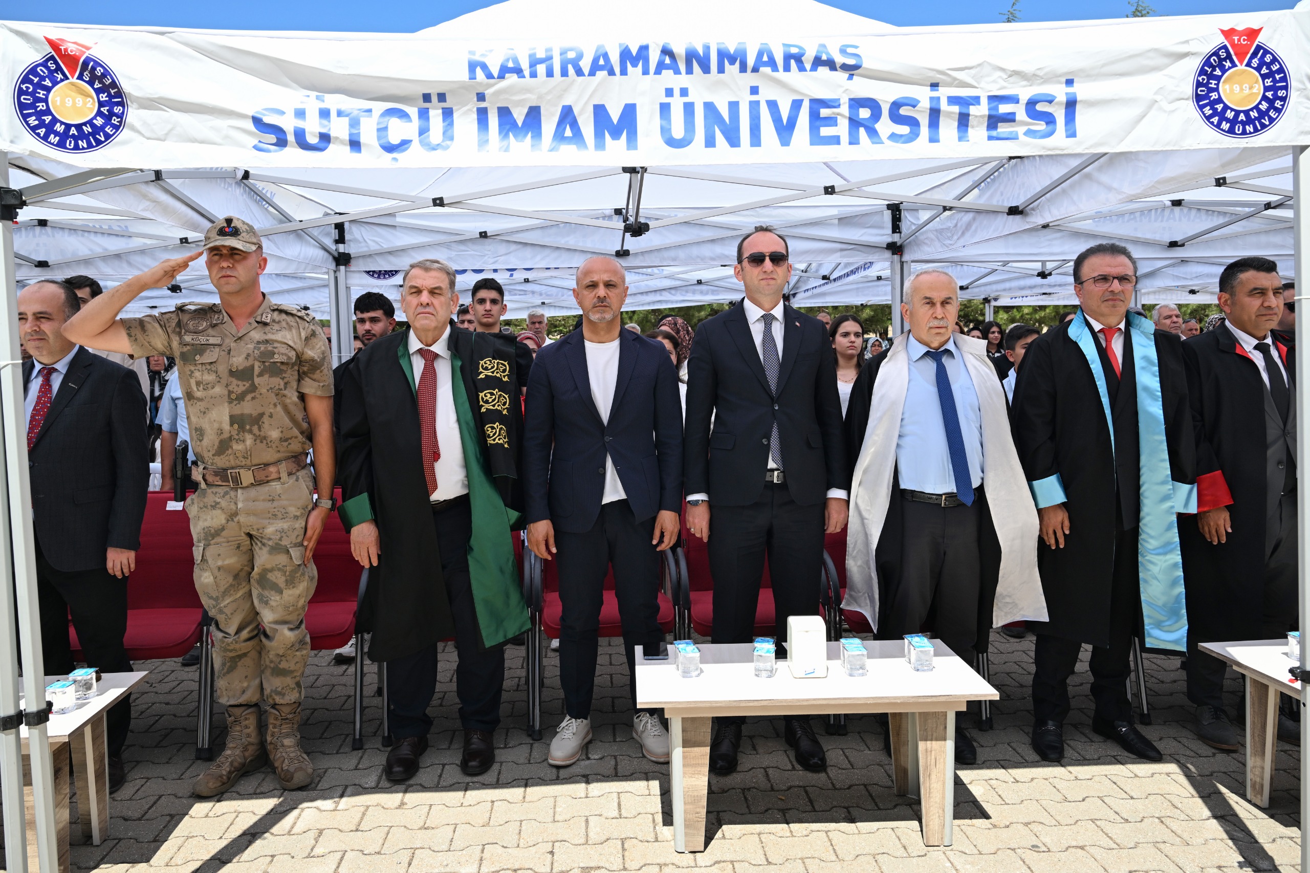 KSÜ Afşin Âşık Mahzuni Şerif Yerleşkesinde gerçekleştirilen mezuniyet törenine KSÜ Rektör Vekili Prof. Dr. Nuri Kahveci, Afşin Kaymakamı Muammer Sarıdoğan, Rektör Yardımcısı Prof. Dr. İrfan Ersin Akıncı, Afşin Belediye Başkanı Koray Kıraç, İlçe Jandarma Komutanı Ahmet Mesut Küçük, İlçe Emniyet Müdürü Abdullah Topal, Afşin Sağlık Yüksekokulu Müdürü Prof. Dr. Tuncay Yeşilkaynak, Afşin Meslek Yüksekokul Müdürü Doç. Dr. Nurettin Koca, İlçe Milli Eğitim Müdürü Fatih Kaba, ilçe protokolü, akademisyenler, öğrenciler ve aileleri katıldı.