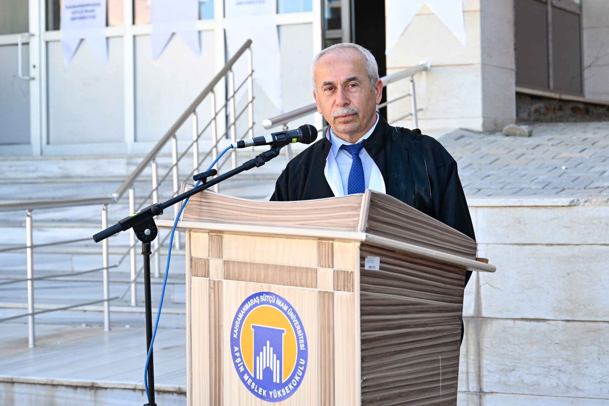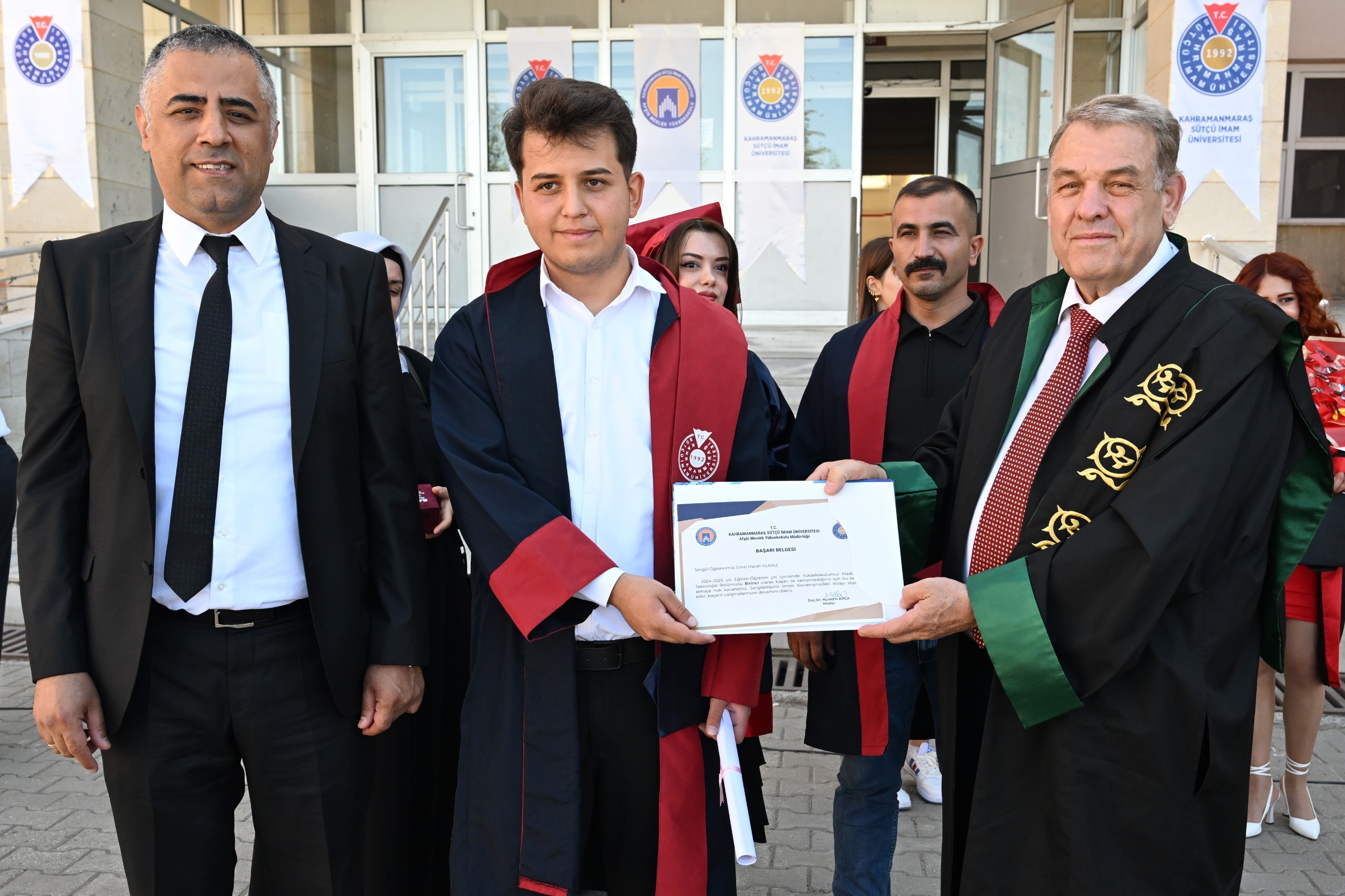 Afşin Sağlık Yüksekokulu Müdürü Prof. Dr. Tuncay Yeşilkaynak ise öğrencilere hitaben, “Bugün sadece mezun olmuyorsunuz, aynı zamanda geleceğe adım atıyorsunuz. Topluma değer katacağınızdan hiç şüphemiz yok.” şeklinde konuştu.
