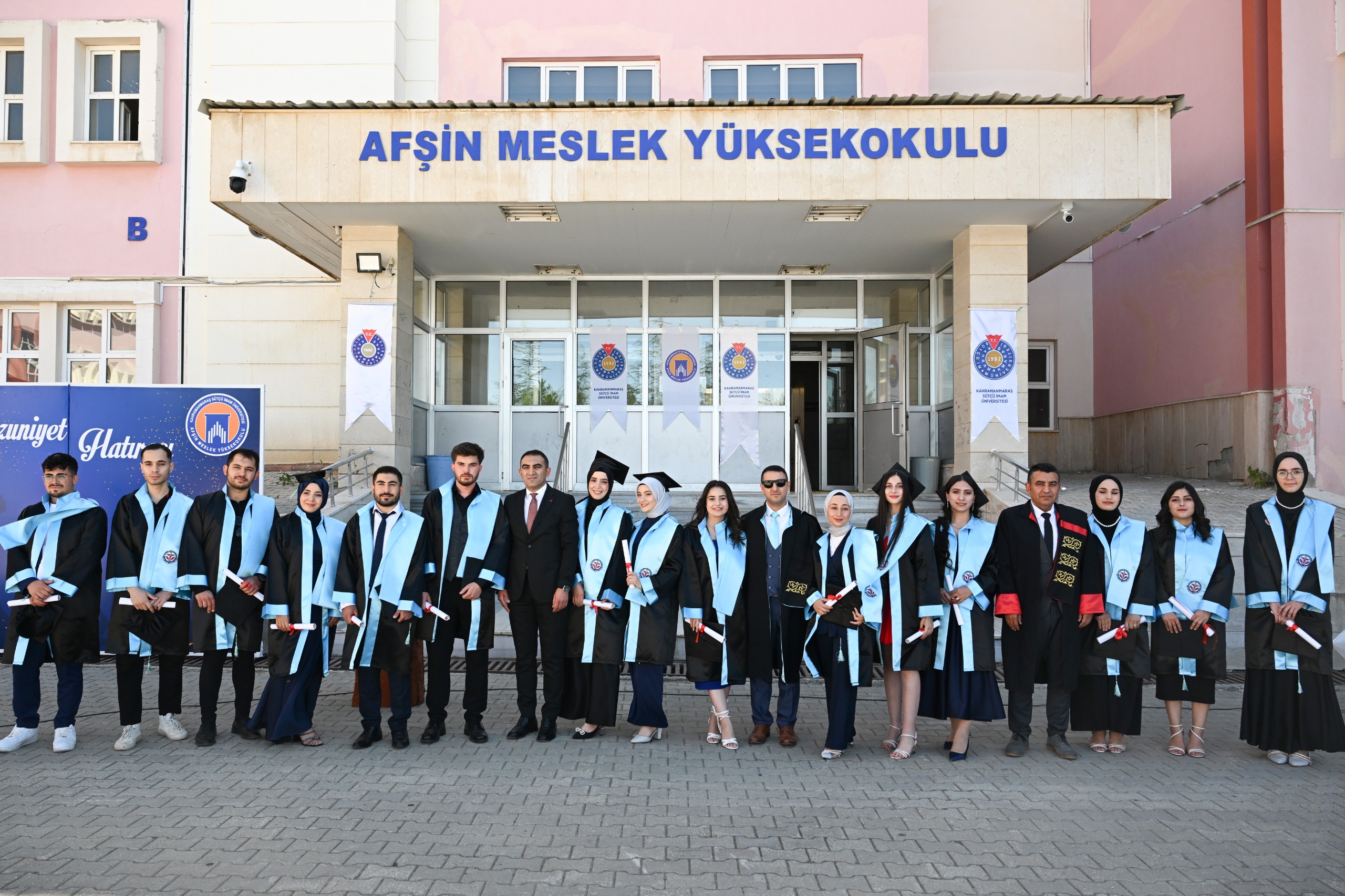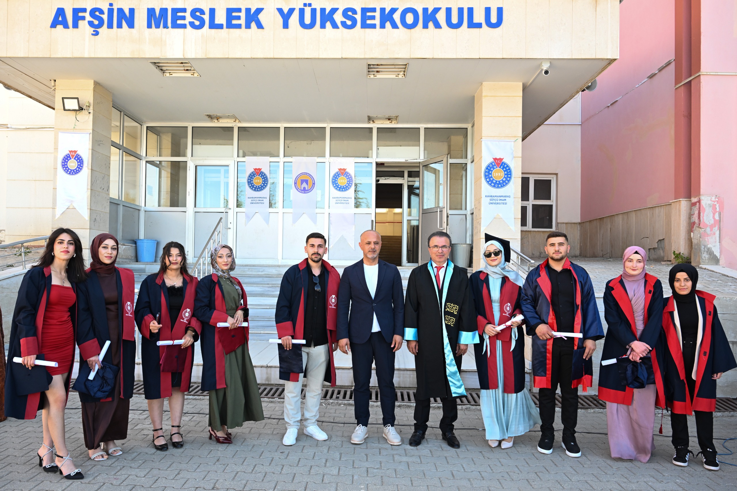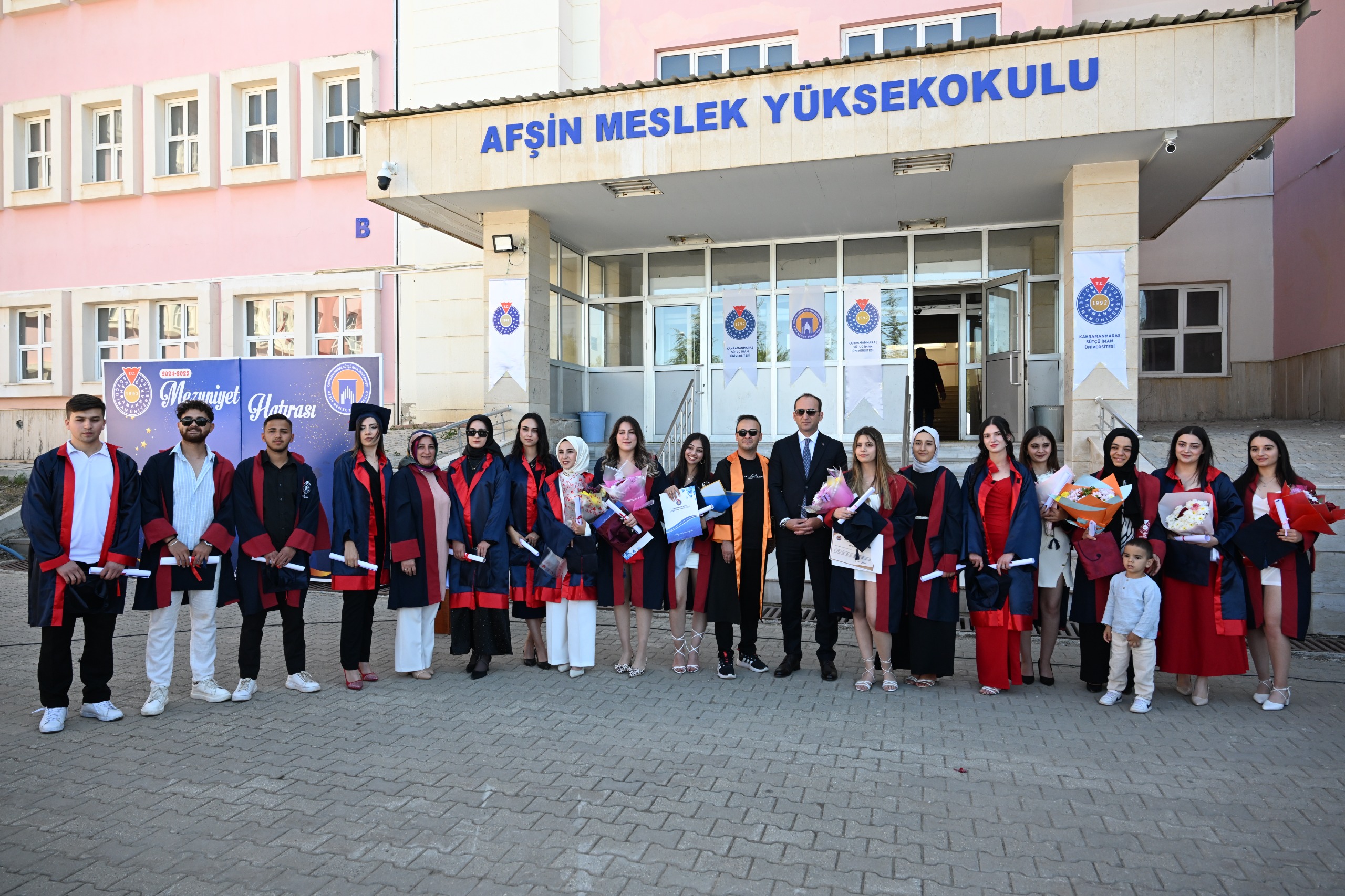 Kahramanmaraş Sütçü İmam Üniversitesi (KSÜ) Afşin Meslek Yüksekokulu ve Afşin Sağlık Meslek Yüksekokulunda 2024-2025 eğitim-öğretim döneminde mezun olmaya hak kazanan öğrenciler için mezuniyet töreni düzenlendi.
