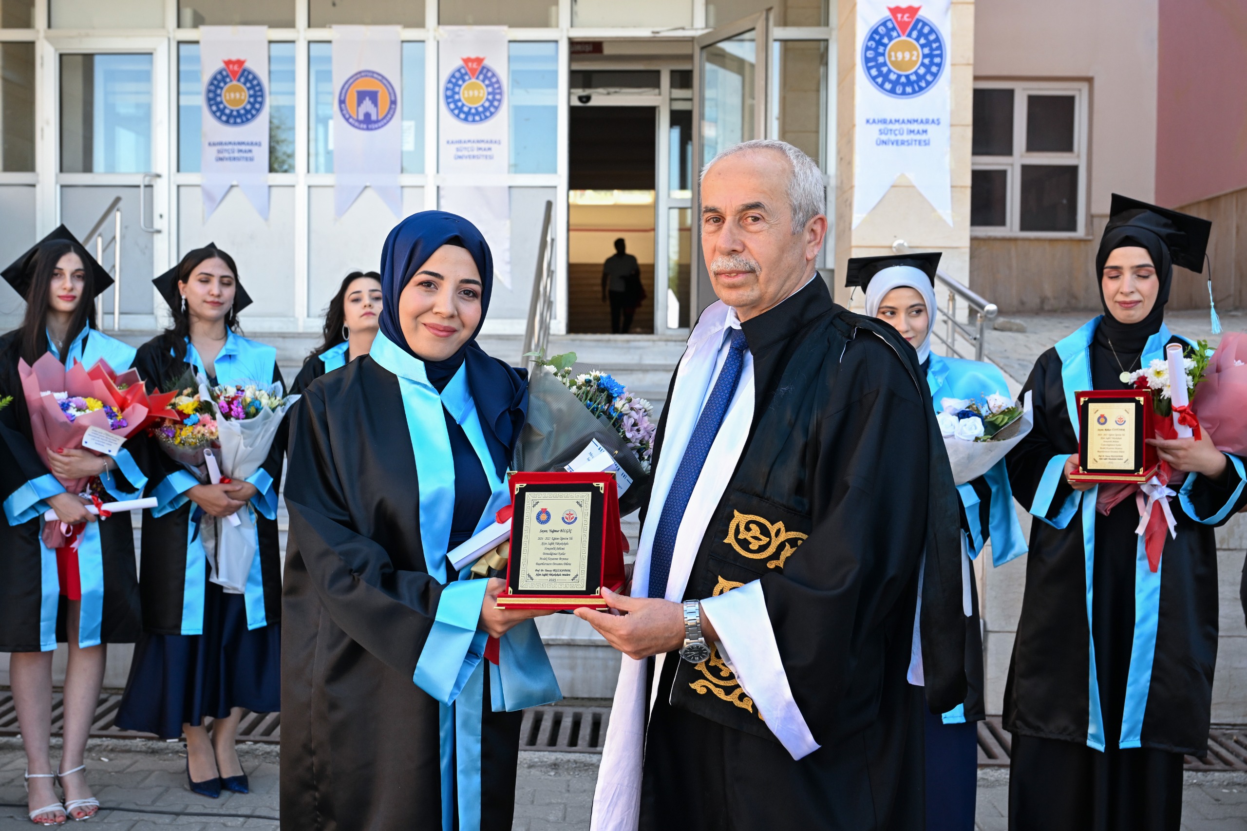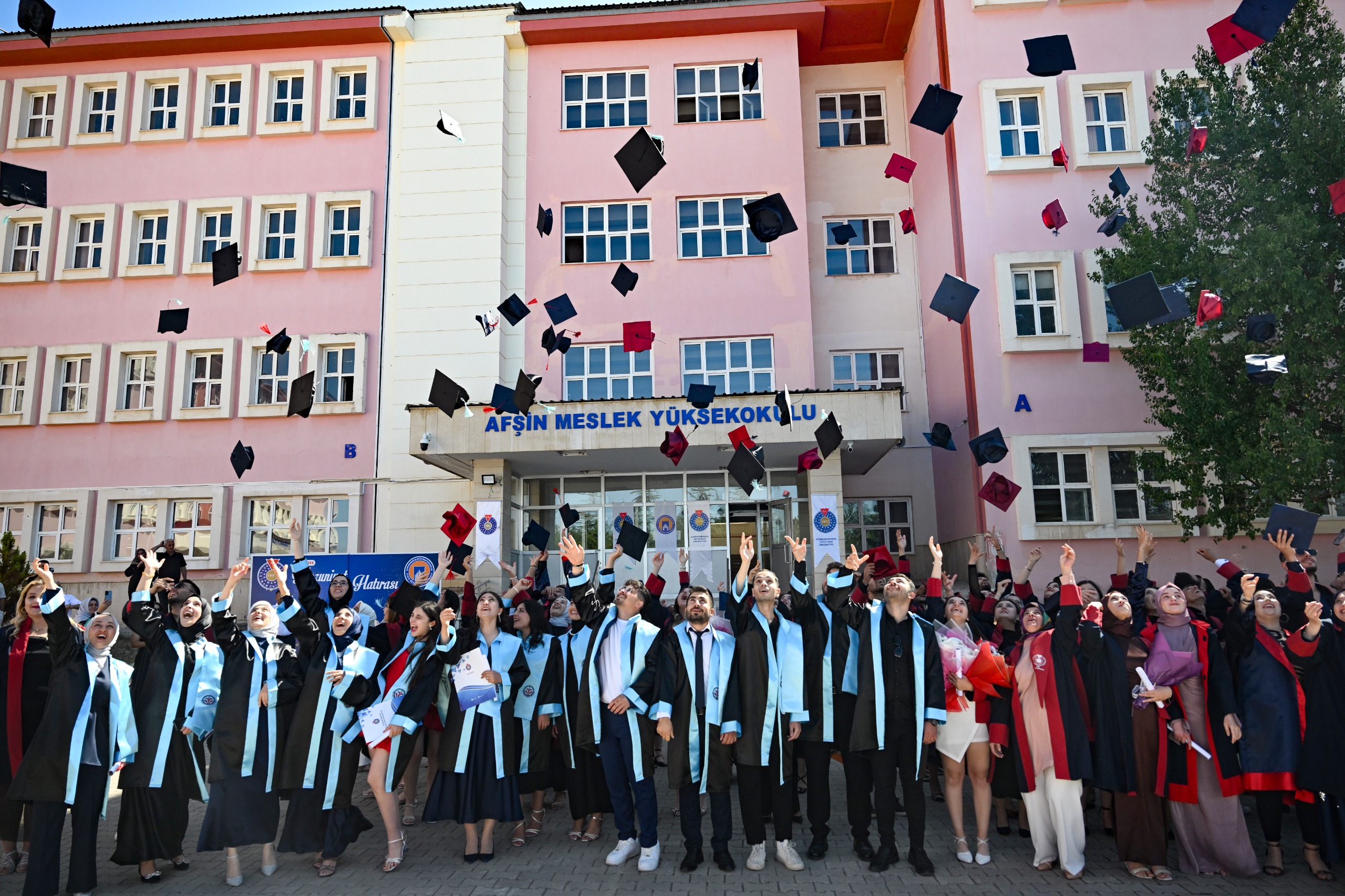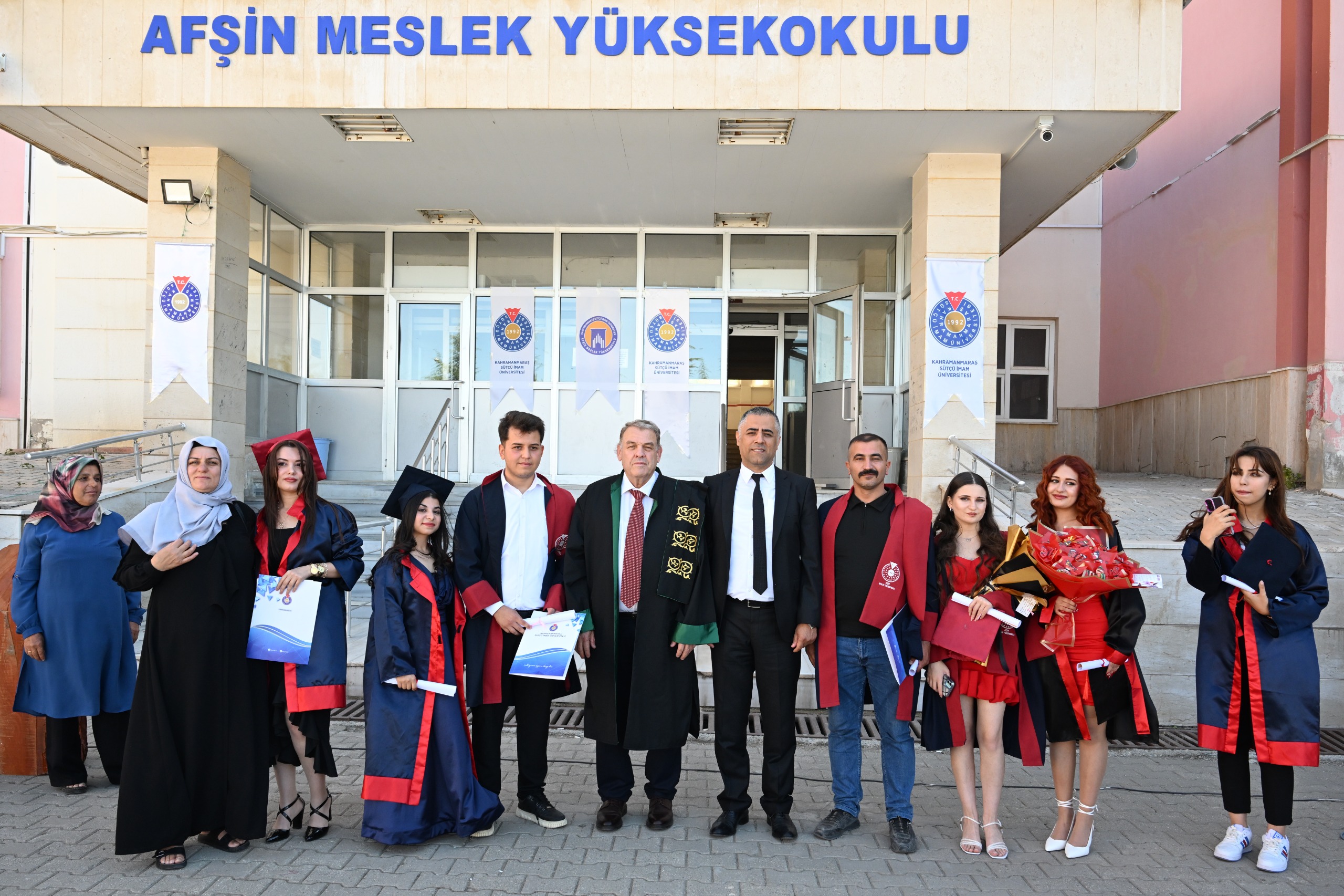 Kahramanmaraş Sütçü İmam Üniversitesi (KSÜ) Afşin Meslek Yüksekokulu ve Afşin Sağlık Meslek Yüksekokulunda 2024-2025 eğitim-öğretim döneminde mezun olmaya hak kazanan öğrenciler için mezuniyet töreni düzenlendi.
