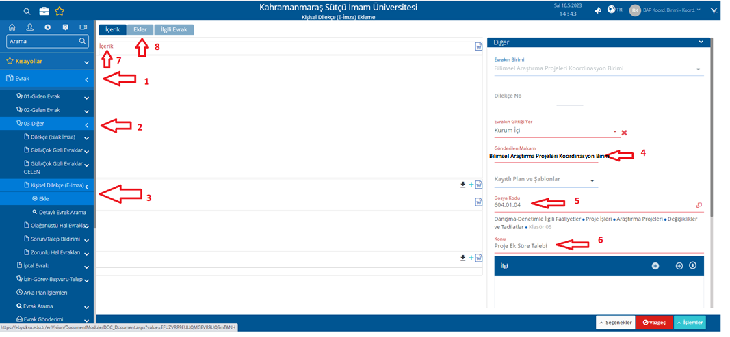 | EBYS de Kişisel Dilekçe Oluşturma Ekran Görüntüsü |
