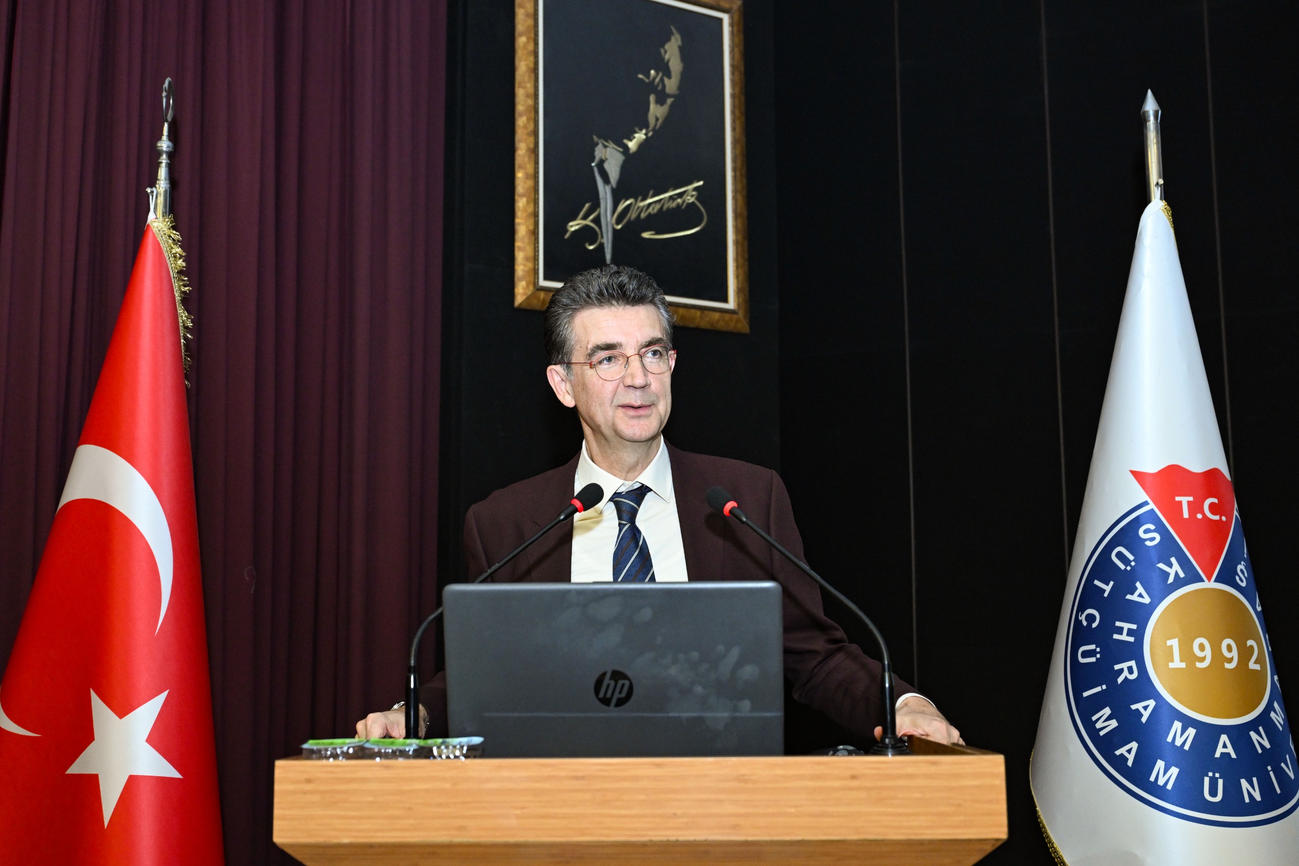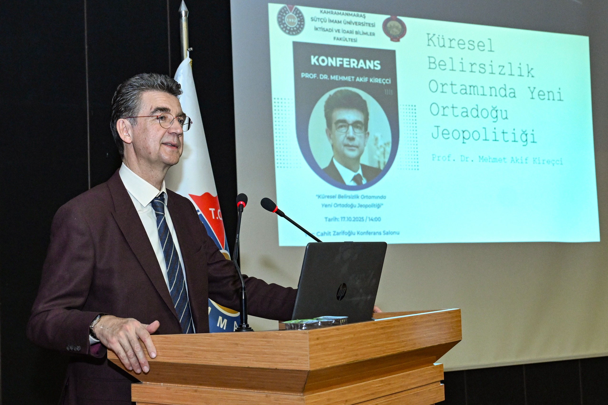 Kahramanmaraş Sütçü İmam Üniversitesi (KSÜ) İktisadi ve İdari Bilimler Fakültesi tarafından düzenlenen “Küresel Belirsizlik Ortamında Yeni Ortadoğu Jeopolitiği” konulu konferans, Cahit Zarifoğlu Konferans Salonunda gerçekleştirildi.