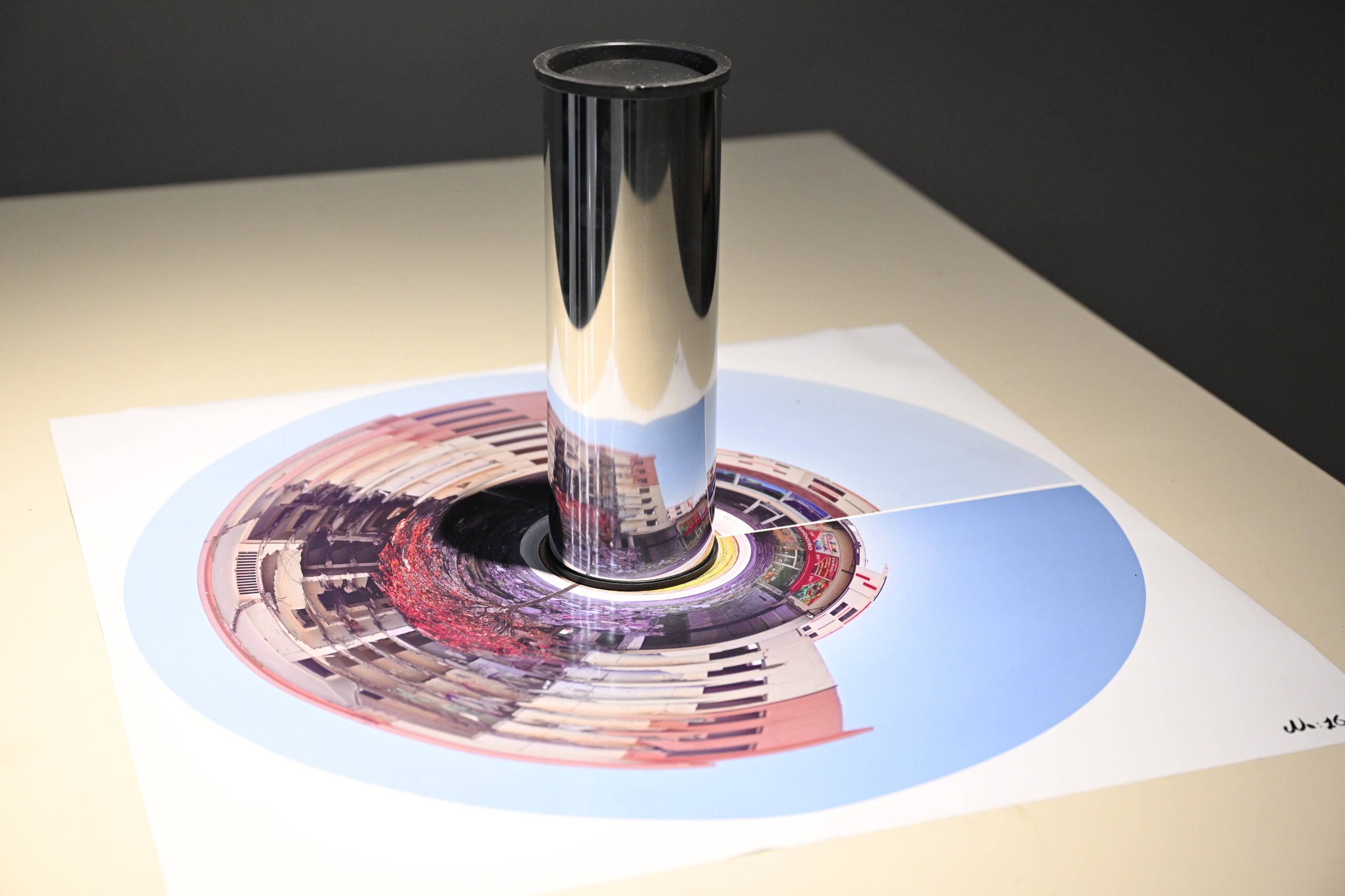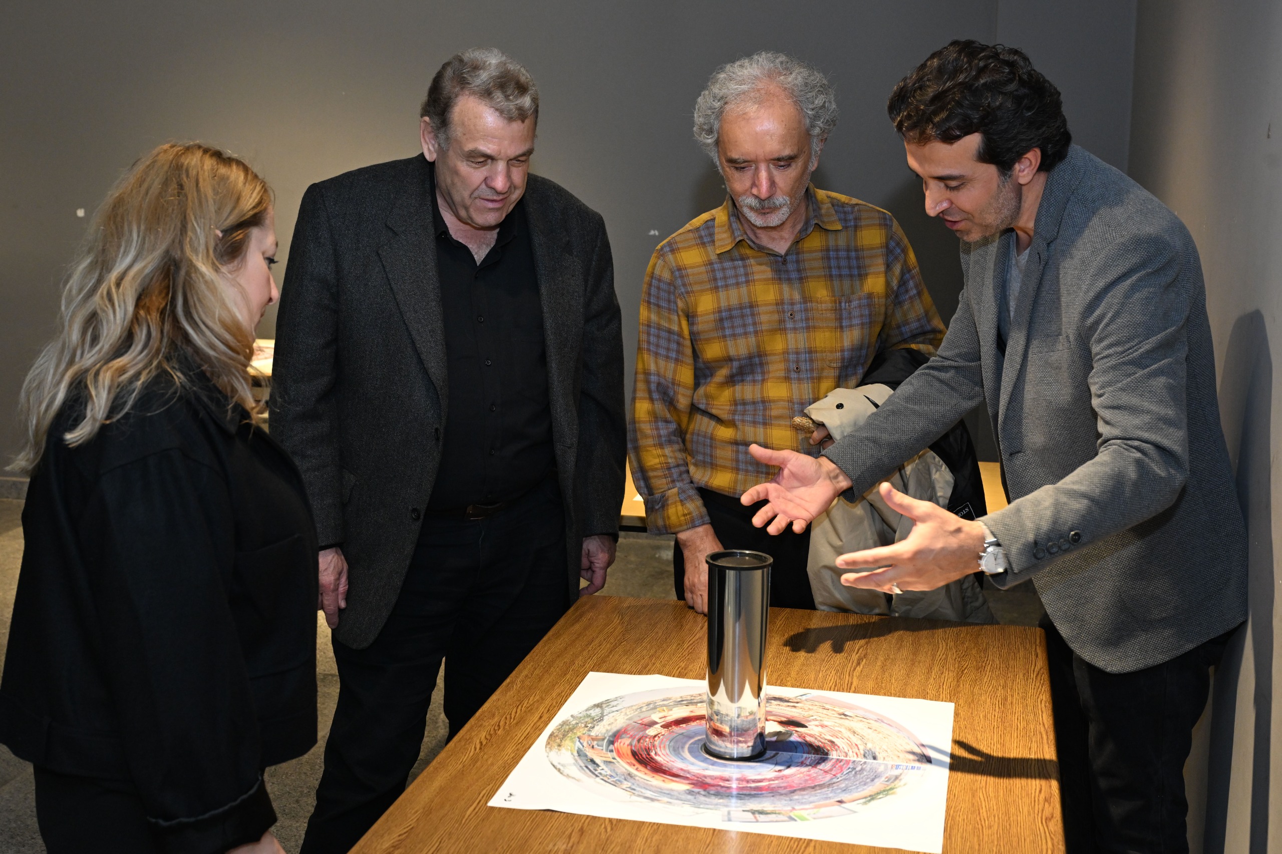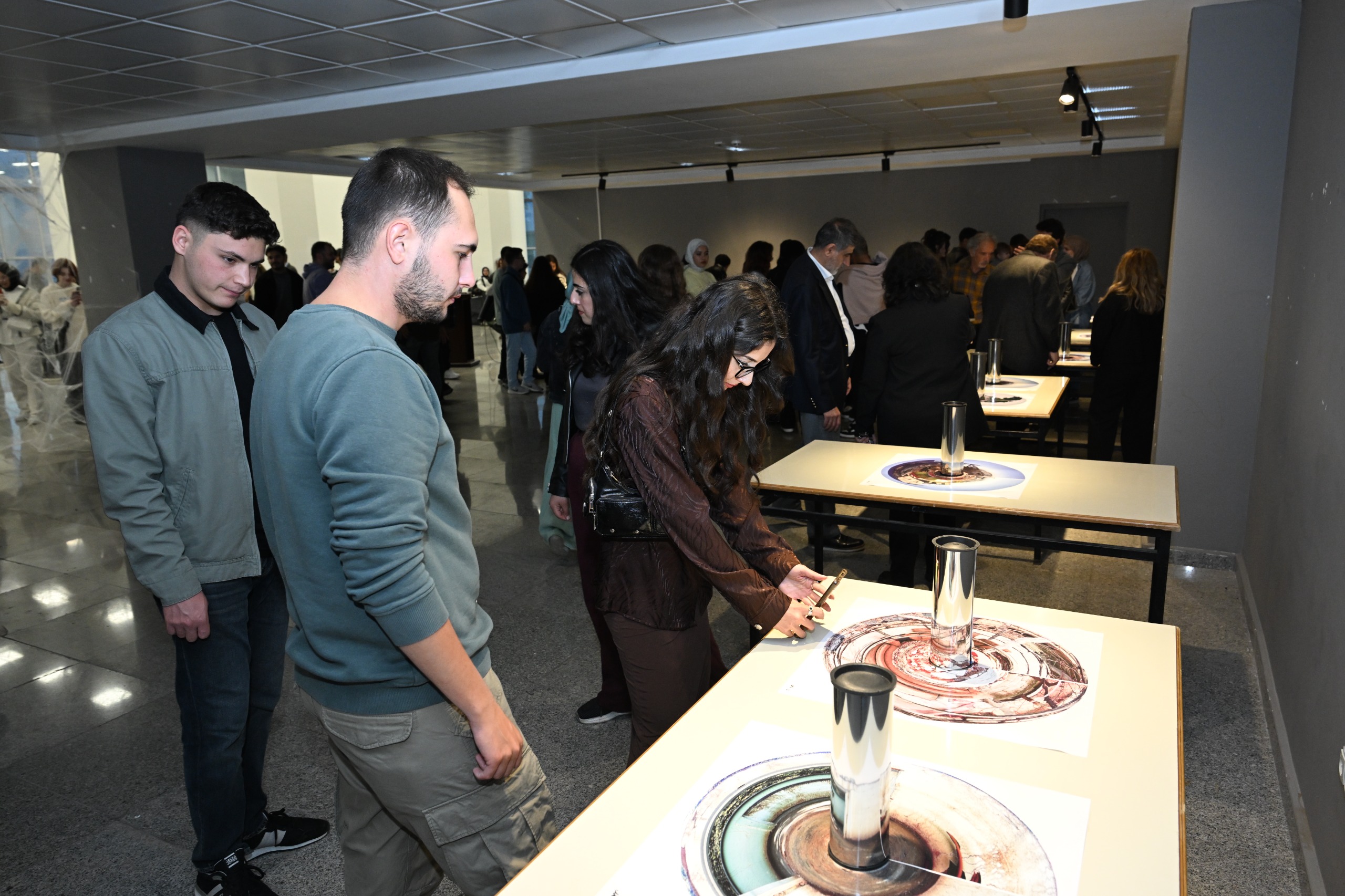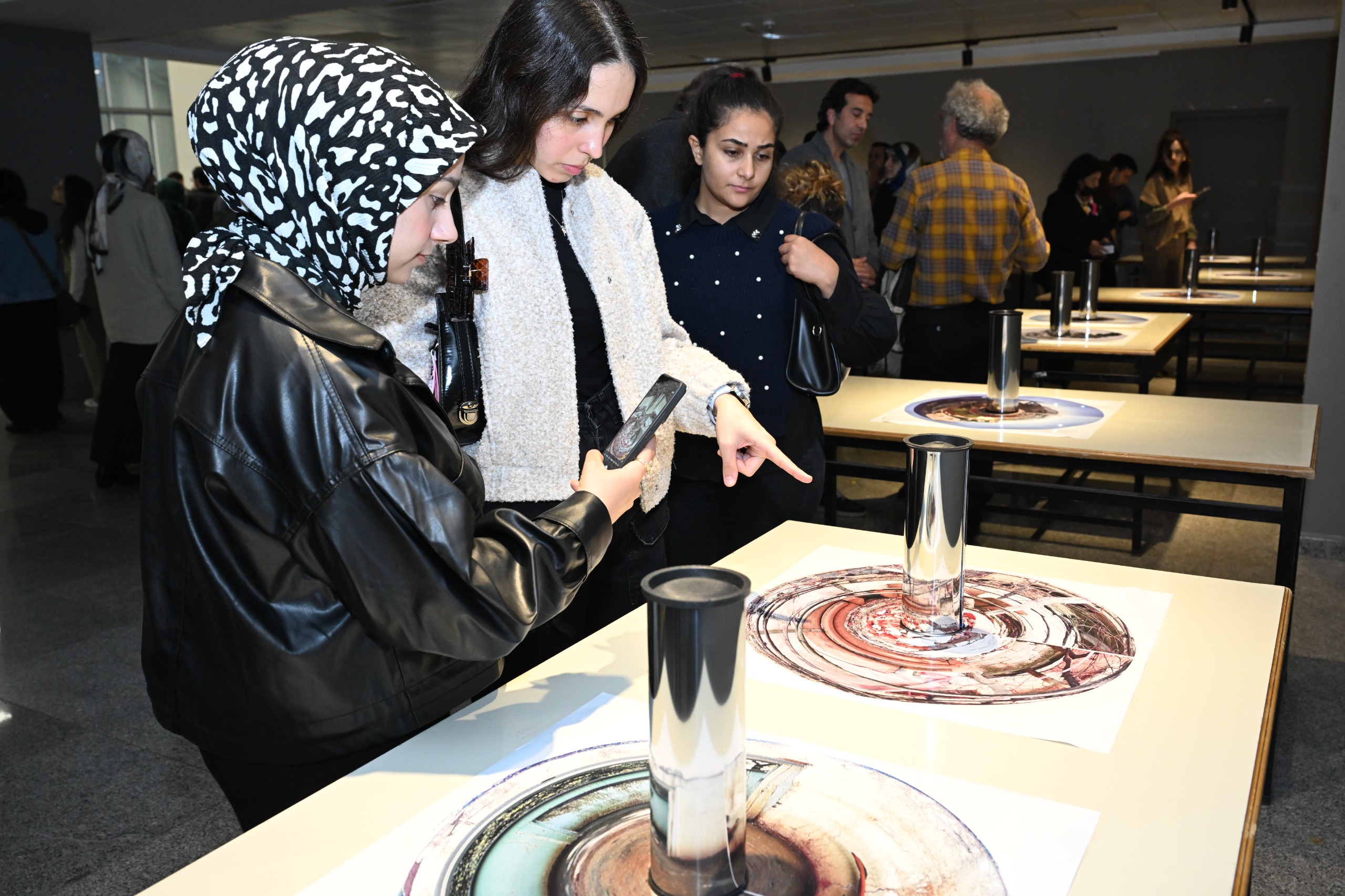 Serginin merkezinde yer alan anamorföz (silindirik ayna) tekniği, yalnızca bir görsel yöntem değil, gerçekle kurulan ilişkinin güçlü bir metaforu olarak izleyiciyle buluşuyor. Bozulmuş yüzeylerdeki imgeler aynada birleşerek “doğru bakış noktasının” önemini vurguluyor. Kaya, sanatın bu yönüyle unutuşa karşı bir direniş ve yeniden inşa çağrısı taşıdığını belirtti.