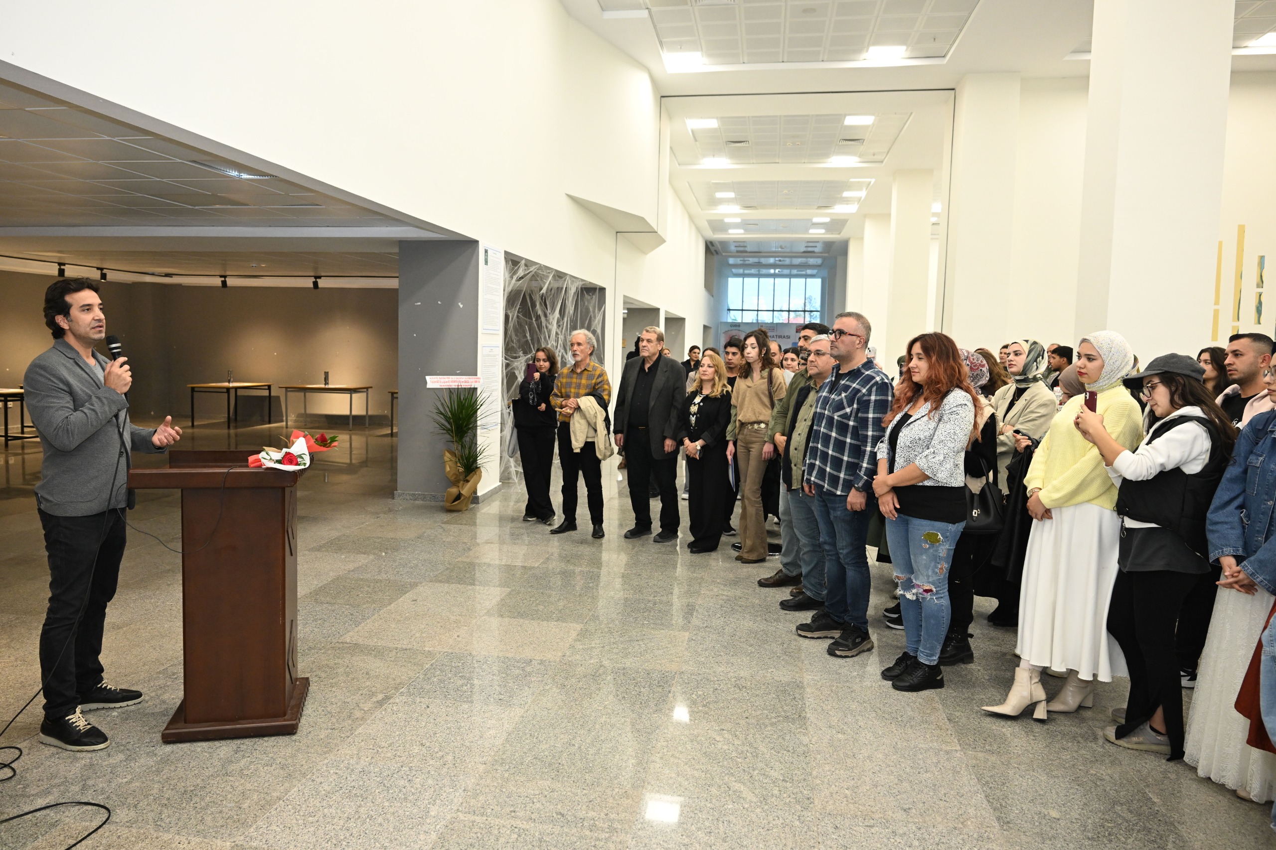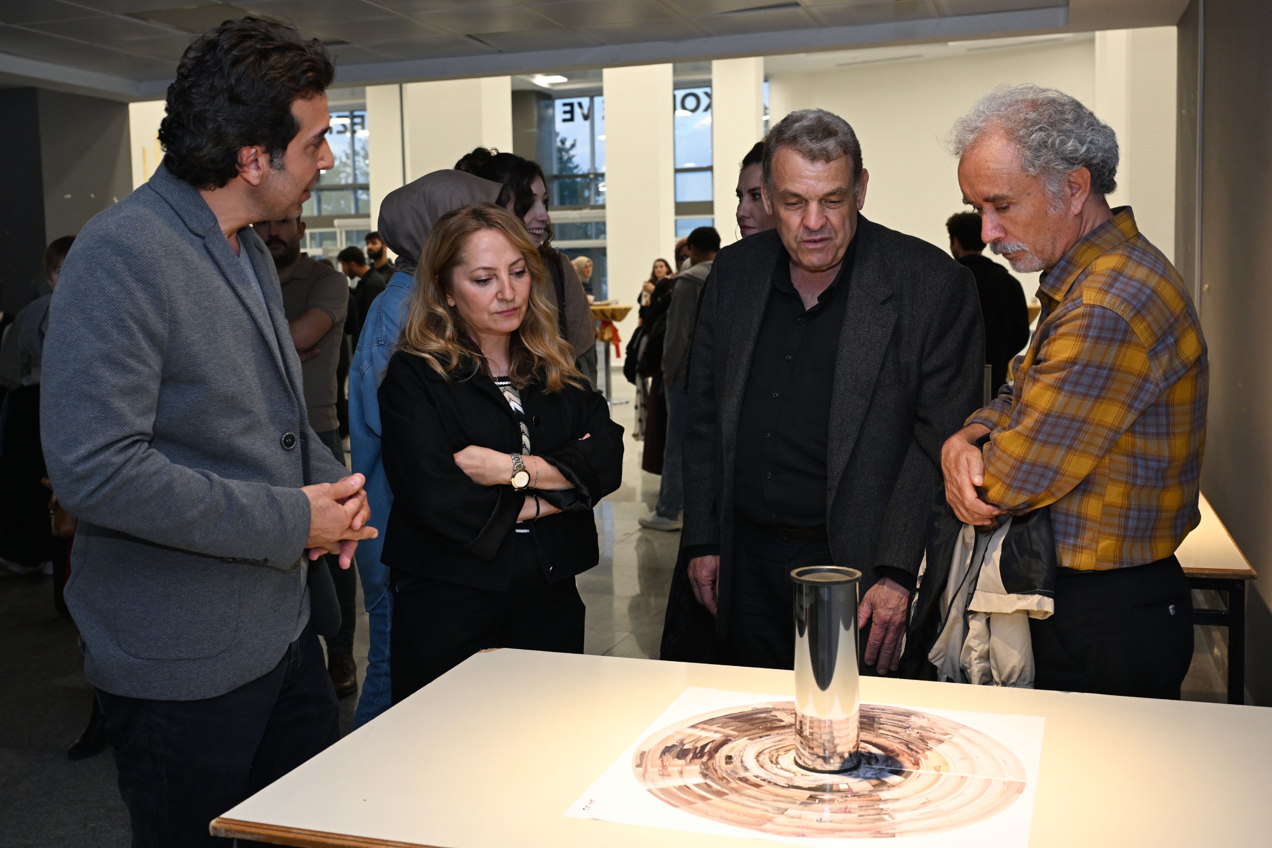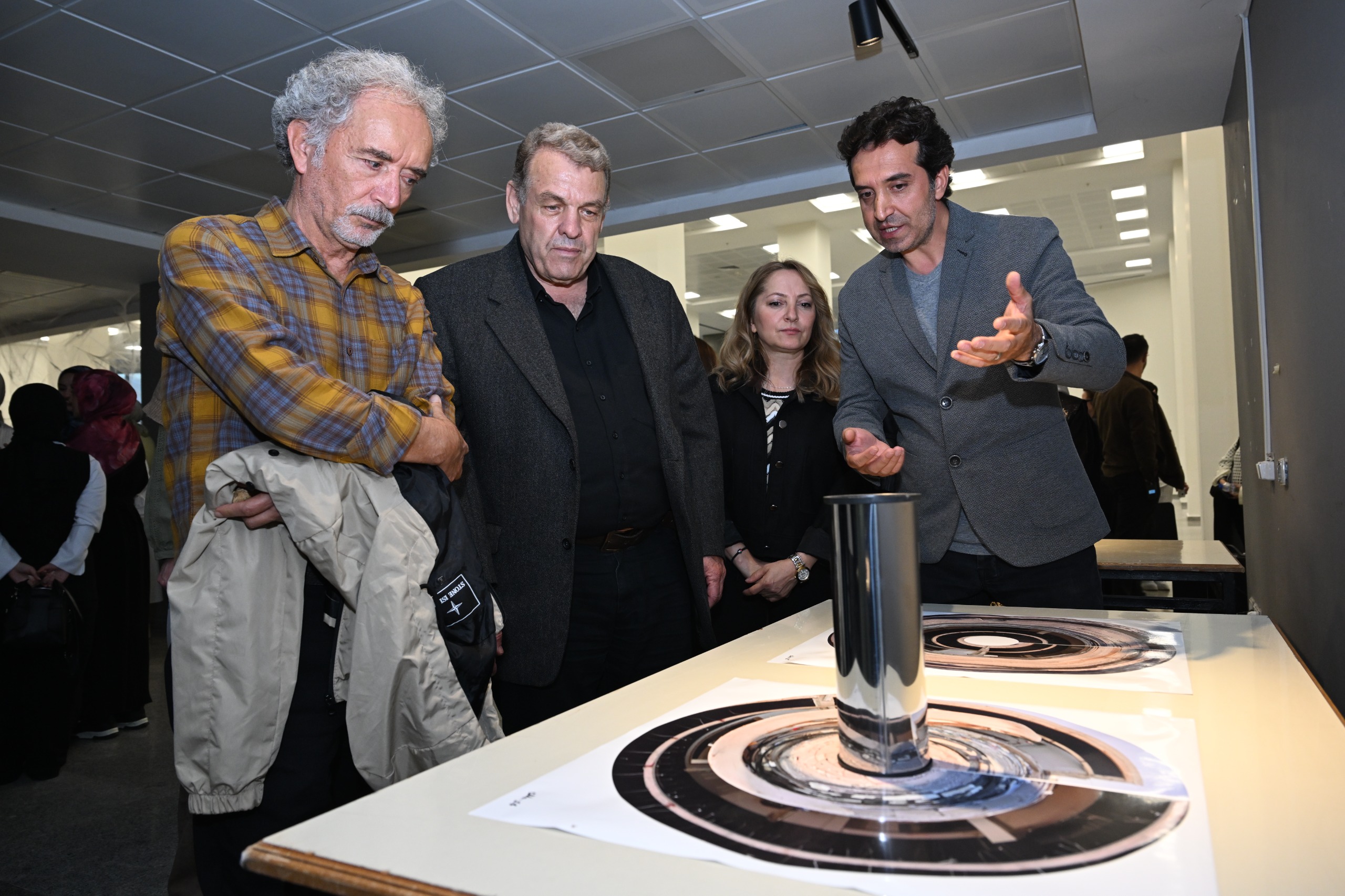 Dr. Öğr. Üyesi Yunus Kaya ise sergiye ilişkin yaptığı konuşmada, çalışmasının yalnızca bir anma değil, bir farkındalık ve yüzleşme çağrısı olduğunu vurguladı. Kaya, “Bu sergi, yaşanan acıları anmanın ötesine geçerek, bu acıların ardındaki ihmalleri ve sorumluluklarımızı birlikte düşünmeye davet ediyor. Parçalanmış imgeler, aynada anlamlı bir bütüne dönüşüyor. Bu, kaosun doğru bir bakışla nasıl hakikate dönüşebileceğini anlatıyor.” ifadelerini kullandı.