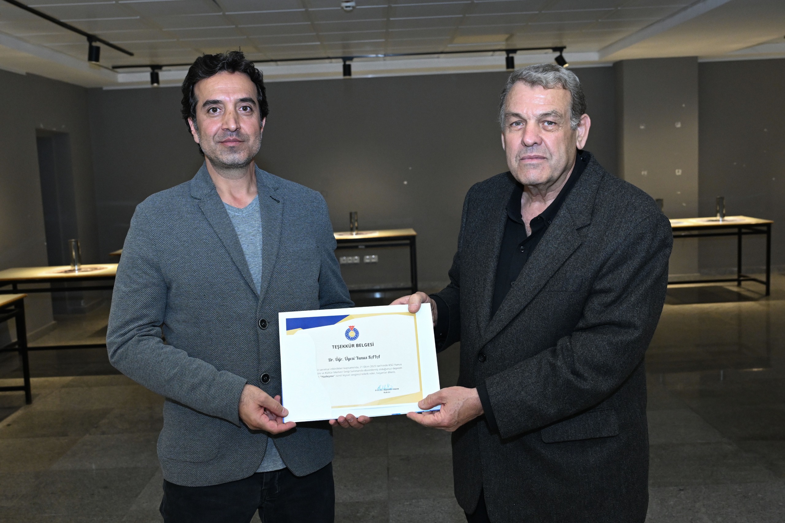 Kahramanmaraş Sütçü İmam Üniversitesi (KSÜ) Güzel Sanatlar Fakültesi Resim Bölümü Dr. Öğr. Üyesi Yunus Kaya’nın “Deprem” temalı kişisel sergisi, Yunus Emre Kongre ve Kültür Merkezi Sergi Salonu’nda sanatseverlerle buluştu.