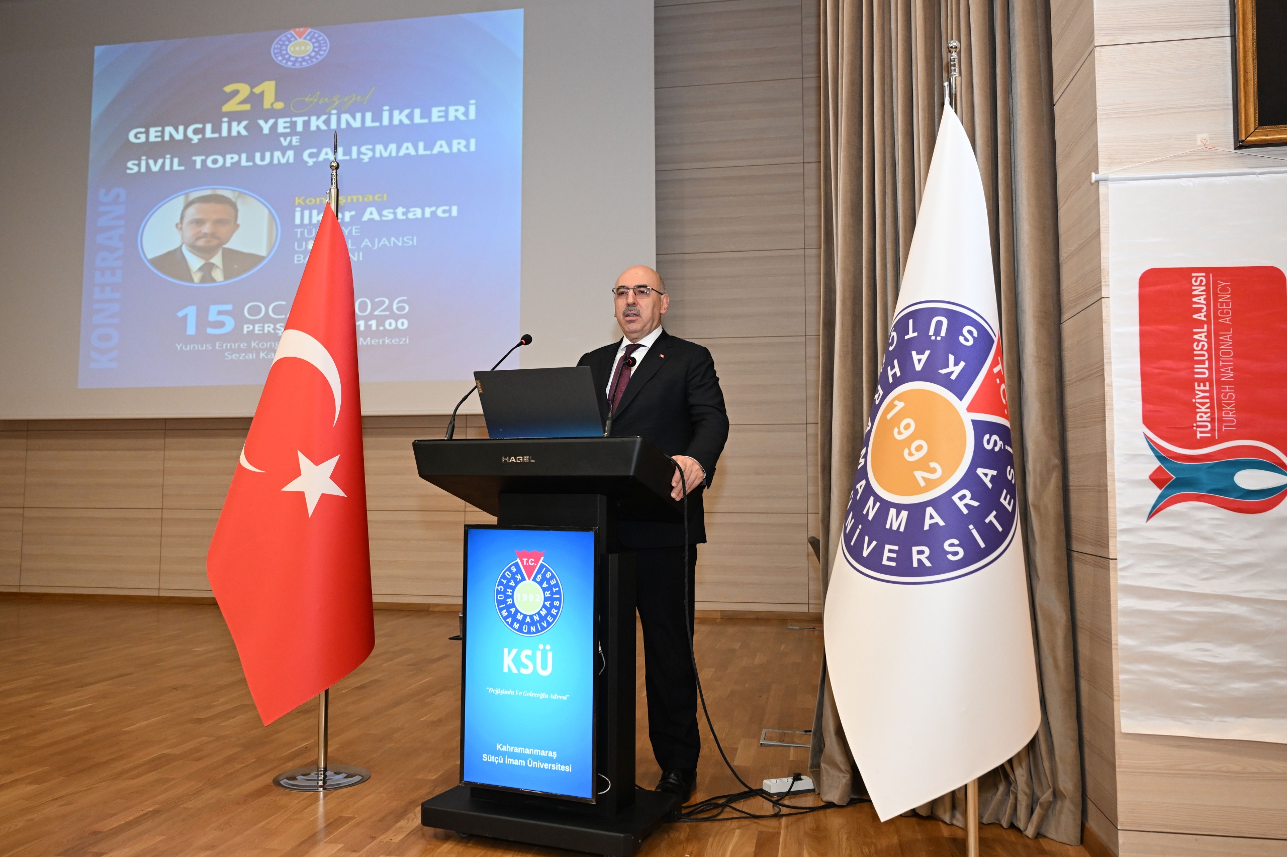 Türkiye Ulusal Ajansı Başkanı İlker Astarcı’nın konuşmacı olduğu “21. Yüzyıl Gençlik Yetkinlikleri ve Sivil Toplum Çalışmaları” konulu konferans, Kahramanmaraş Sütçü İmam Üniversitesinde (KSÜ) gerçekleştirildi.