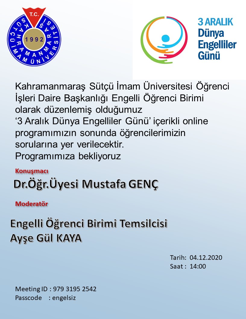 04.12.2020 - 3 Aralık Dünya Engelliler Günü Çevrim İçi Söyleşi Programı