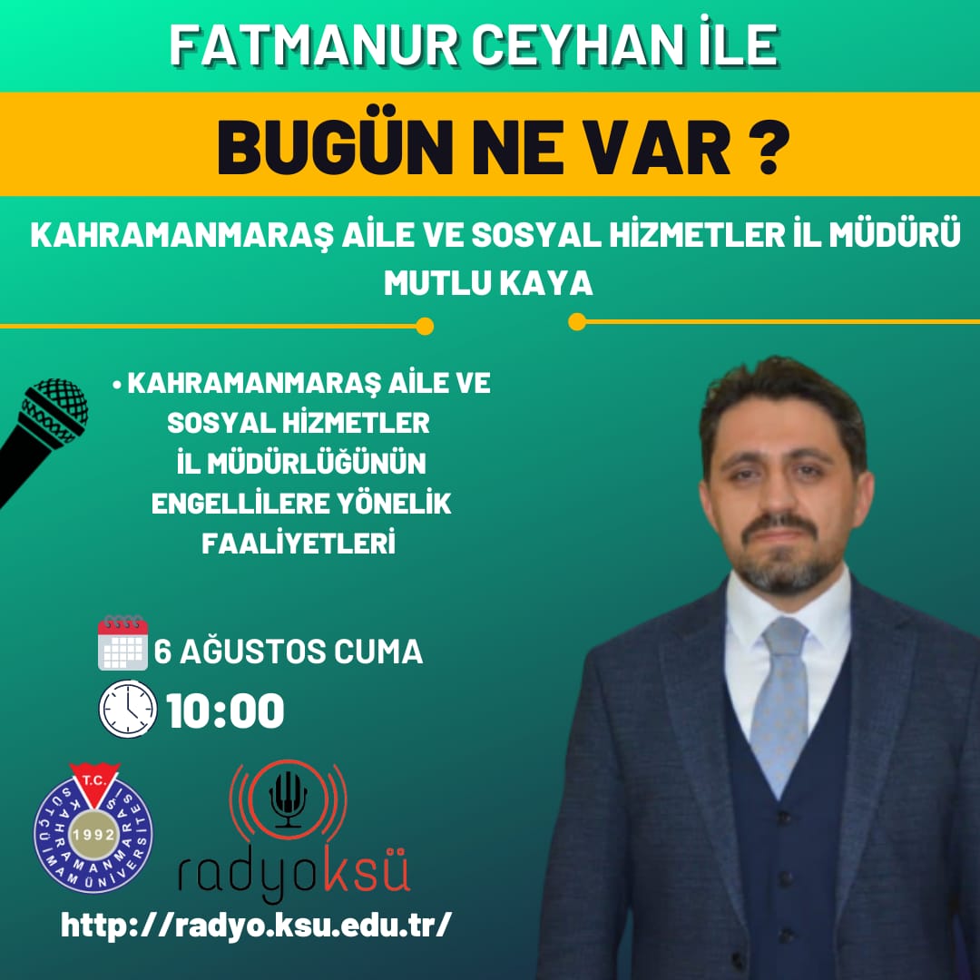 13.08.2021 - KSÜ Radyo Programı "Kahramanmaraş Aile ve Sosyal Hizmetler İl Müdürlüğünün Engellilere Yönelik Faaliyetleri"