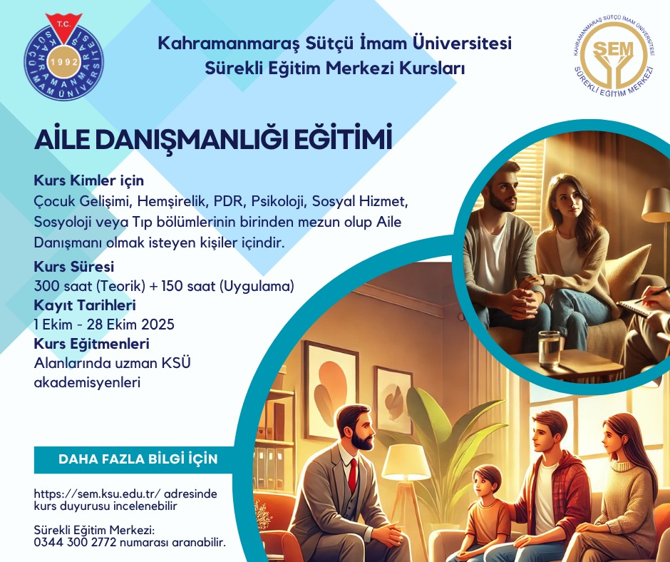-Aile Danışmanlığı Sertifikası: Tıp, Psikoloji, Sosyal Hizmetler, Sosyoloji, Psikolojik Danışma ve Rehberlik, Hemşirelik, Çocuk Gelişimi alanlarından birinde en az 4 yıllık lisans programlarından mezun olanlar.