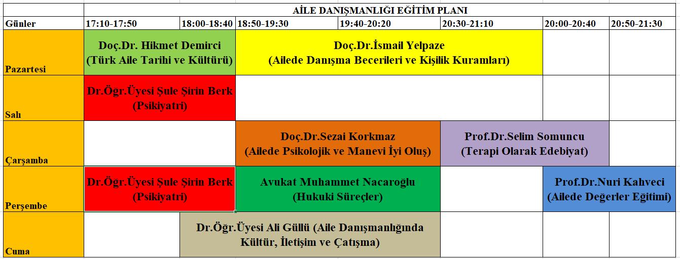 Aile Danışmanlığı : 450 Saat (300 Saat Teorik – 120 Saat Uygulamalı–30 Saat Süpervizyon)