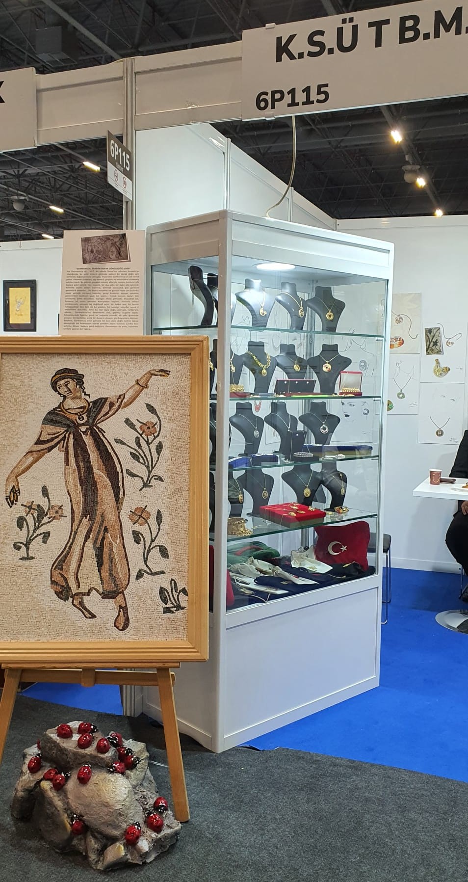Takılar, simsırma işlemeli giysi ve çantalar ile mozaik işleme ürünlerinden oluşan koleksiyon, fuarda dikkatleri üzerine çekti. Uluslararası ziyaretçilerin yoğun ilgi gösterdiği eserler, hem KSÜ’nün akademik üretim gücünü hem de Kahramanmaraş’ın köklü kültürel mirasını tanıtma fırsatı sundu. Ters lale, uludaz böceği ve Germenicia mozaikleri gibi kentin simgeleri; küpe, broş, kolye, bilezik, çanta ve kemer tasarımlarında estetik bir dille yeniden yorumlanarak dünyaya taşındı.