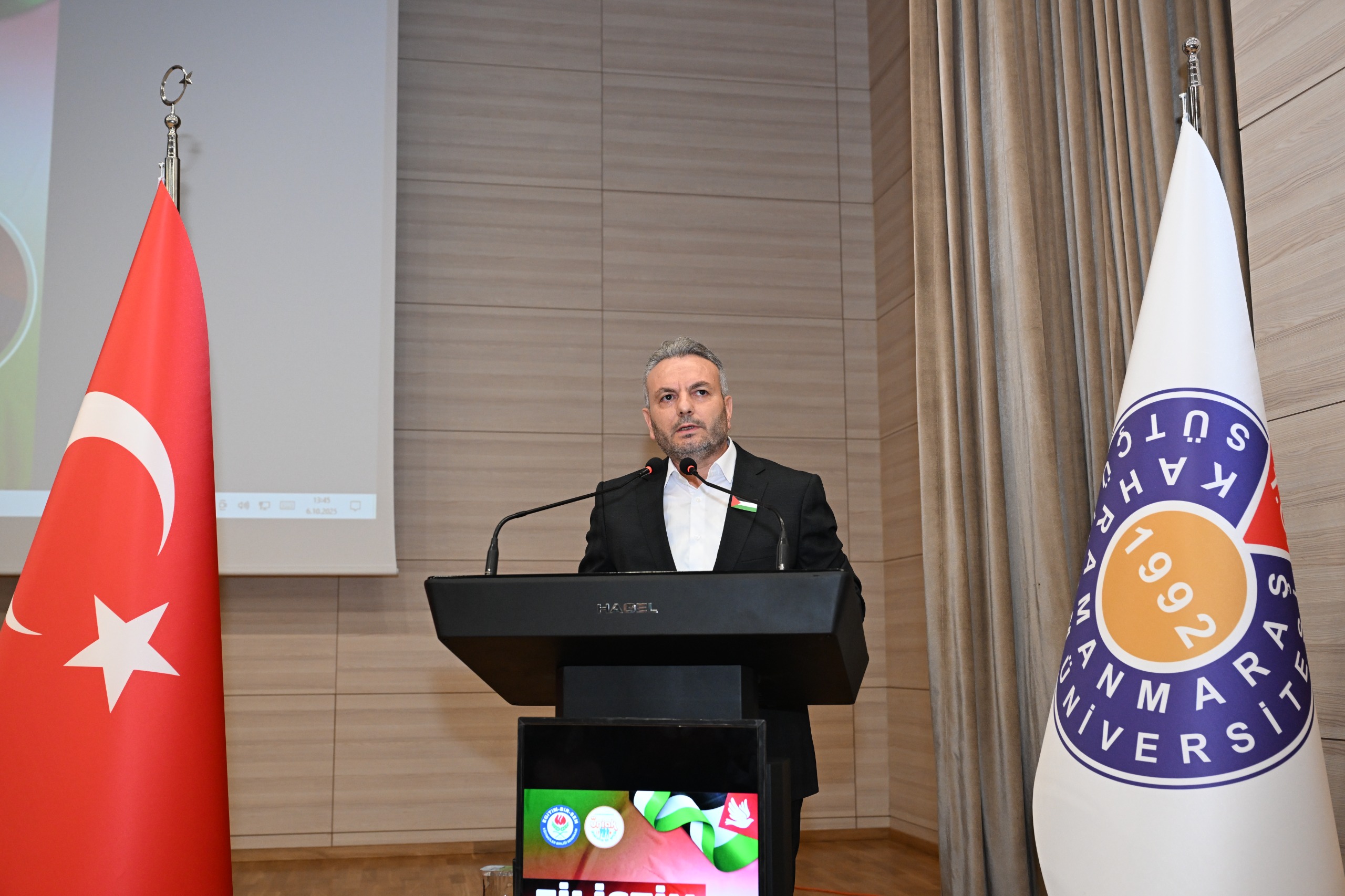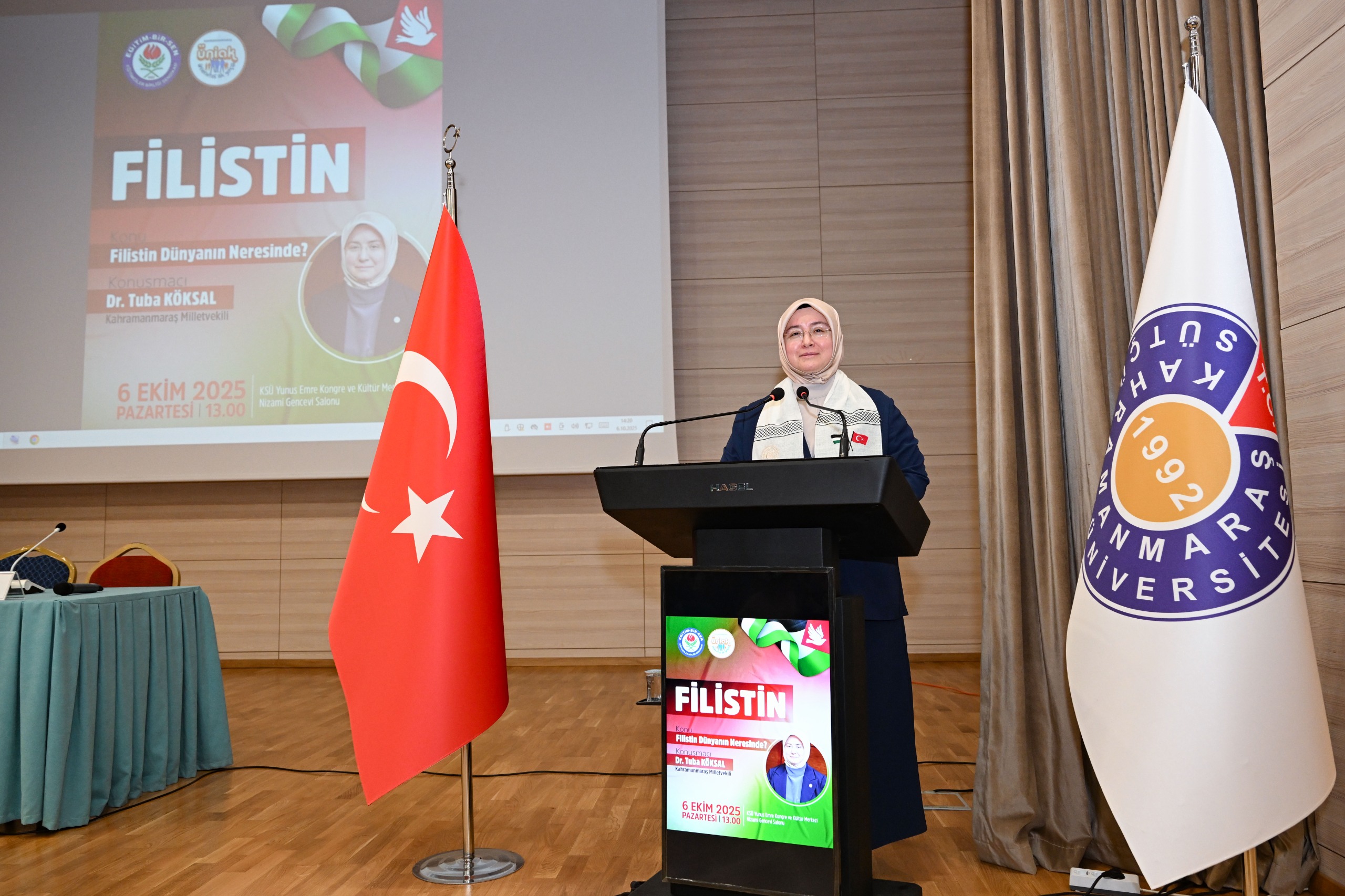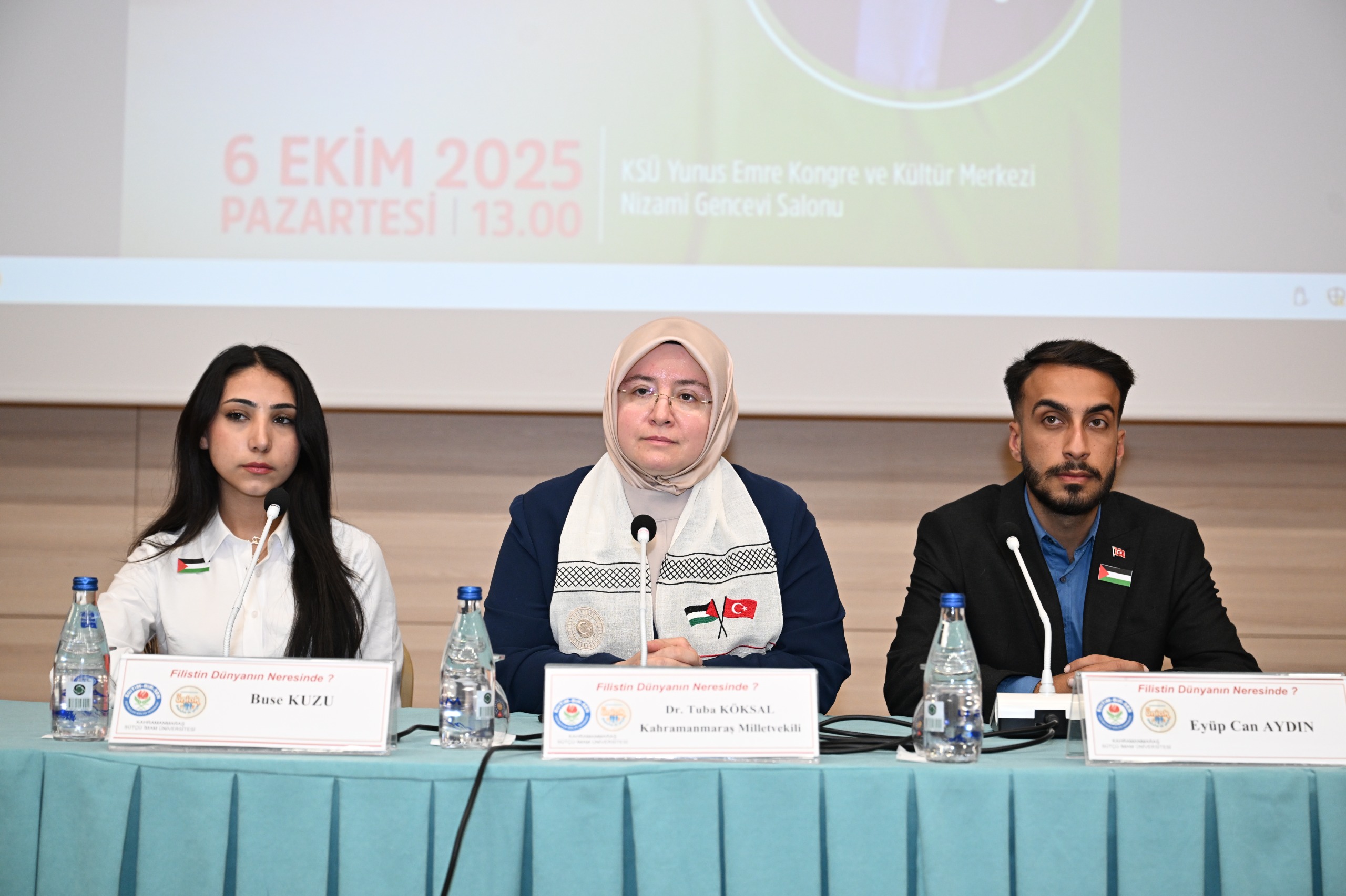 Kahramanmaraş Sütçü İmam Üniversitesinde (KSÜ), Eğitimciler Birliği Sendikası (Eğitim-Bir-Sen) Kahramanmaraş 2 No’lu Şube ile ÜNİAK Kahramanmaraş Şubesi iş birliğinde “Filistin Dünyanın Neresinde?” konulu konferans düzenlendi. Program, Yunus Emre Kongre ve Kültür Merkezi Nizâmî-i Gencevî Konferans Salonunda gerçekleştirildi.