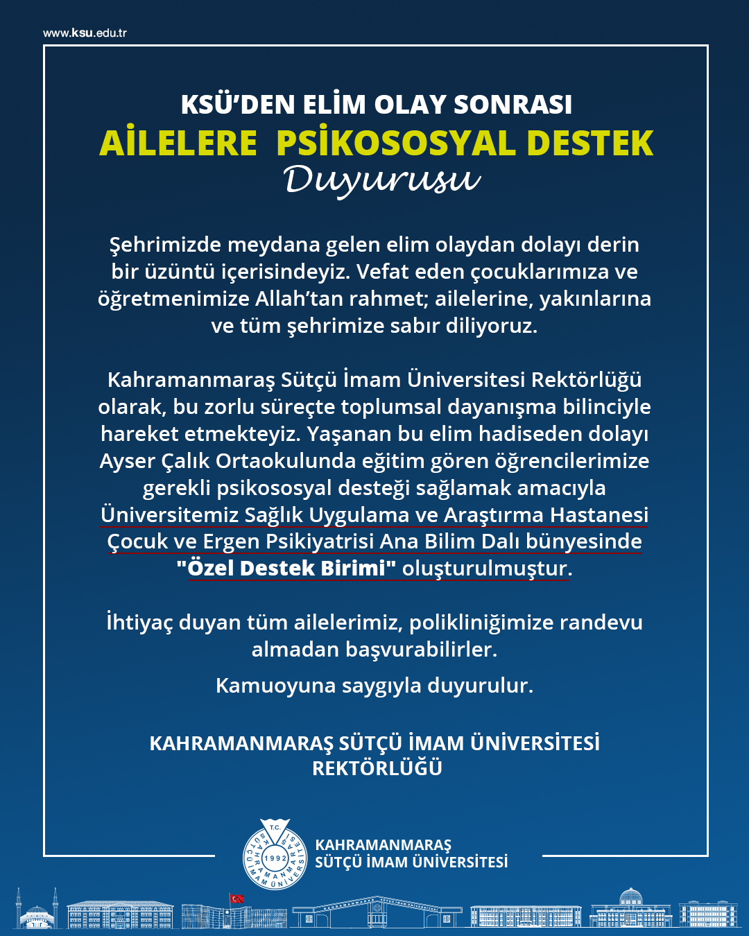 KSÜ’den Elim Olay Sonrası Ailelere Psikososyal Destek